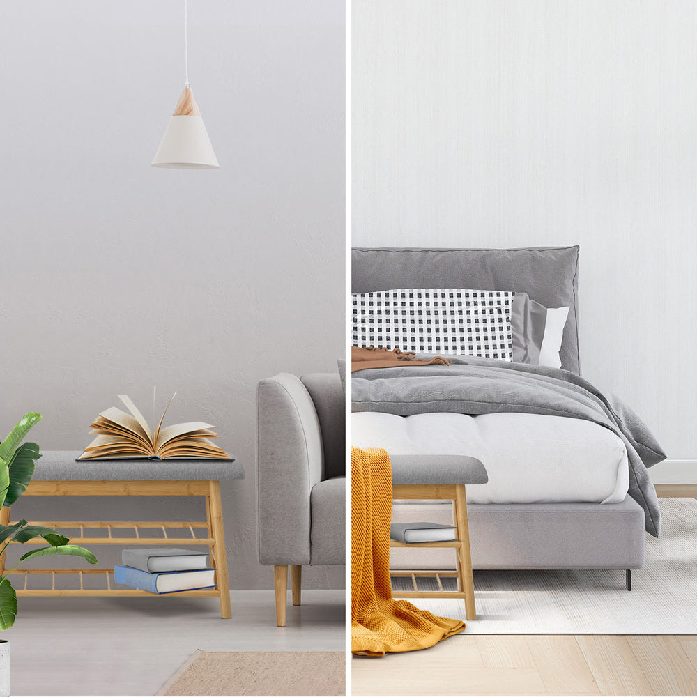 Keeping footwear neat and tidy and looking good too. The Oikiture Rattan Shoe Storage Bench will definitely add a touch of order and finesse to any hallway or entrance. The two-tier shoe rack is functionally adequate for a small number of footwear storage. But what’s great about this product is its 3-in1 function. As a bench, the richly padded sponge seat with a fabric upholstery makes for comfortable sitting to put on your footwear with minimum hassles. No need for any awkward balancing act. Lift up the bench and a vast hinged hidden storage is found just under the seat to store footwear paraphernalia or other assorted accessories. Everything is close at hand (or at feet). The bamboo construction also ensures that the shoe storage bench is strong and durable with a maximum weight capacity of up to 100kg. Safe for most people to use it without any worries. The finishing is smooth with fine attention to details that is backed by meticulous workmanship. Better still, do not confine this shoe storage bench to just the front entrance as it will work equally as satisfying in any home space where shoe storage is required. Not least, very little maintenance is needed with this shoe storage bench and just a simple wipe with a damp cloth is all that is needed to preserve its pristine condition. Assembly is a breeze too with the easy-to-follow instructions to get it up and standing in no time at all.