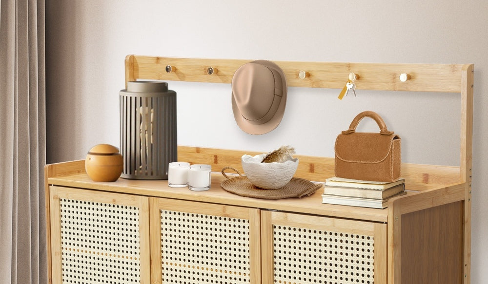 There are shoe storage cabinets. And there is the Oikiture Rattan Shoe Storage Cabinet. Pleasing to the eye with an appealing bamboo and rattanesque three-door design, our shoe storage cabinet will definitely add a touch of finesse to any hallway or entrance. Such are its attractive qualities and inherent draw.