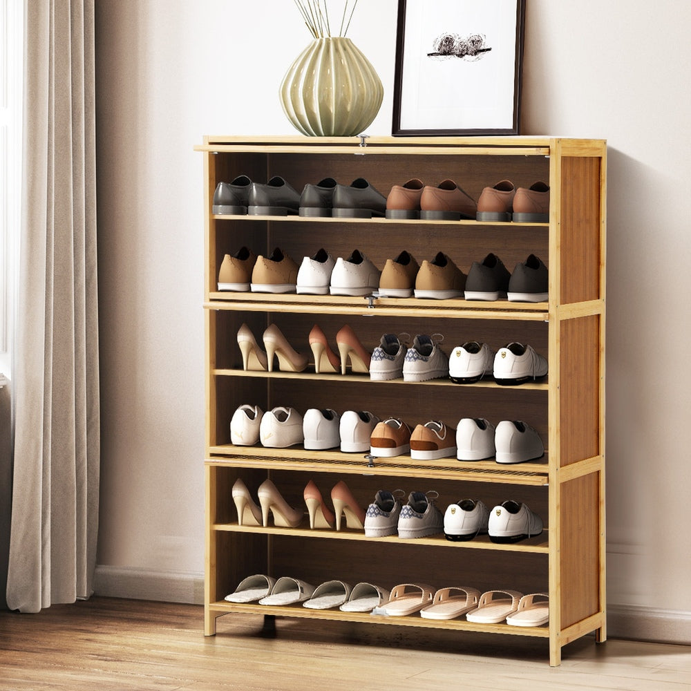 Crafted with precision, this shoe storage solution not only declutters your space but also elevates it with its contemporary aesthetic. The flip-up door with sliding functionality and the meticulously designed doorknob makes this cabinet a standout piece, blending modern convenience with sleek design. Upgrade your entryway or bedroom with our Oikiture Shoe Storage Cabinet - where innovation and style come together for the perfect storage solution.