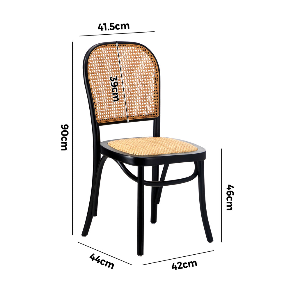 NNEED 2PCS Dining Chairs Wooden Rattan Black