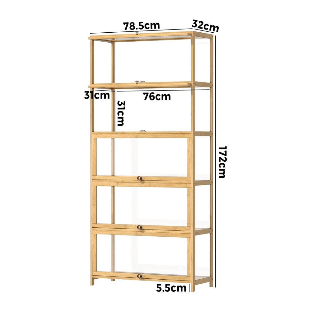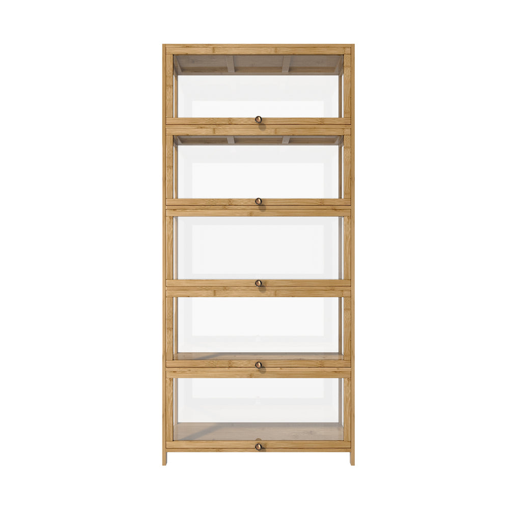 NNEED Display Cabinet 5-Tier Clear Shelves Oak