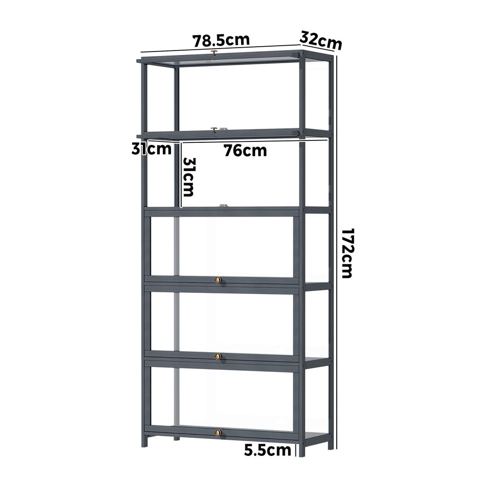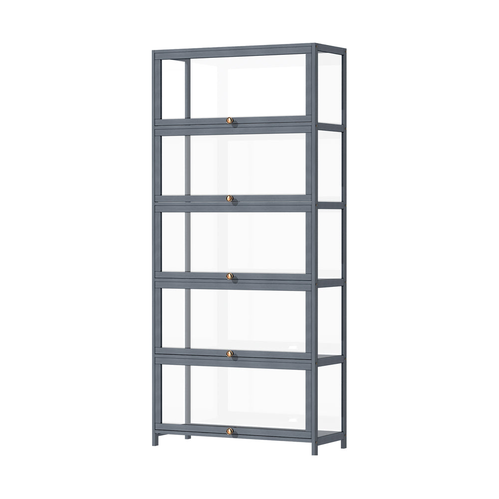 NNEED Display Cabinet 5 Tiers Clear Door Grey