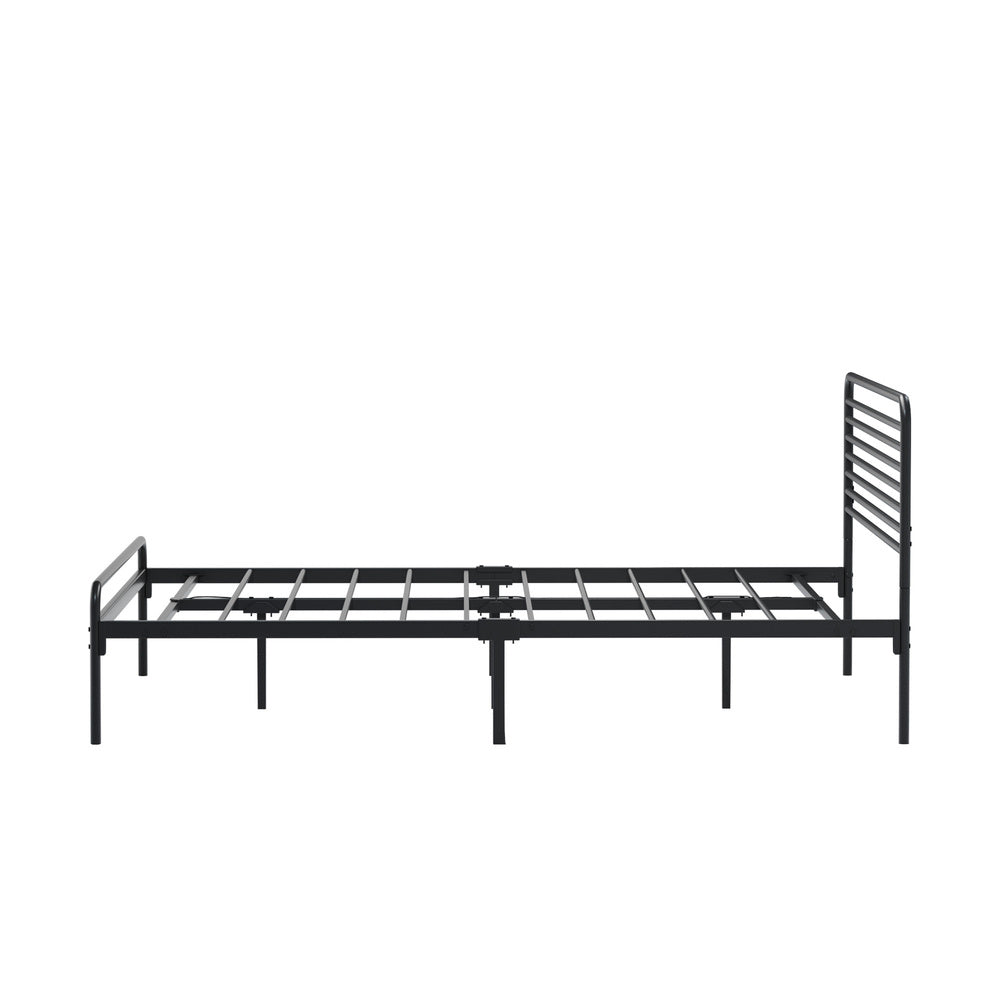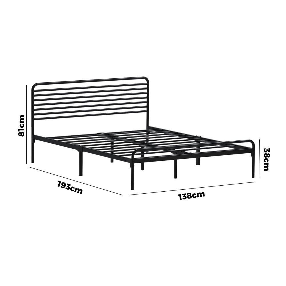 The distinctive railing design on the bed head adds a touch of uniqueness to your sleeping space, providing sturdy support while enhancing the visual appeal with its thoughtful craftsmanship. Crafted from high-quality metal, including metal bars for reinforced mattress support, this bed frame ensures durability and longevity. The robust construction not only supports your mattress and foundation but also withstands the test of time, offering a reliable and sturdy foundation for a restful night's sleep.