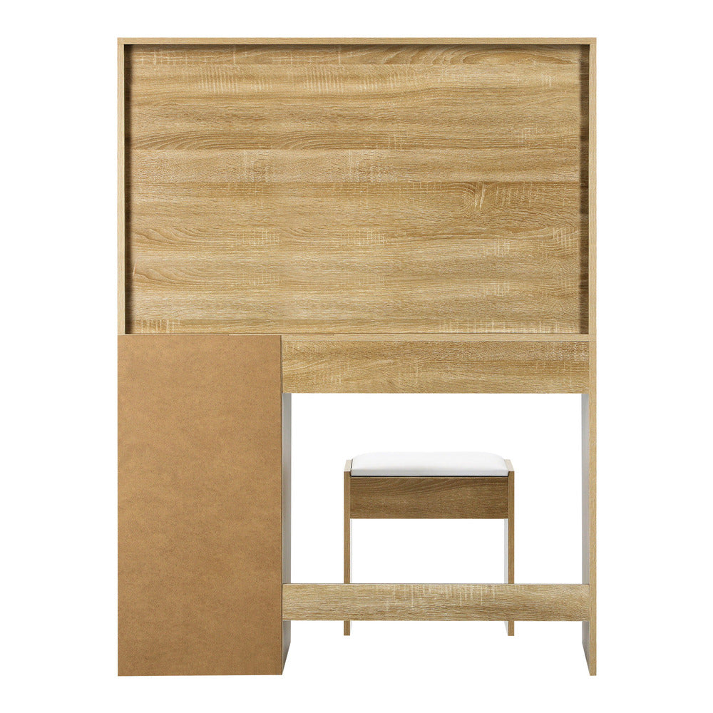 NNEED Dressing Table Stool Set Large Mirror 12 Bulbs Oak