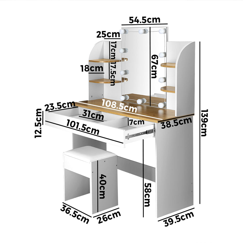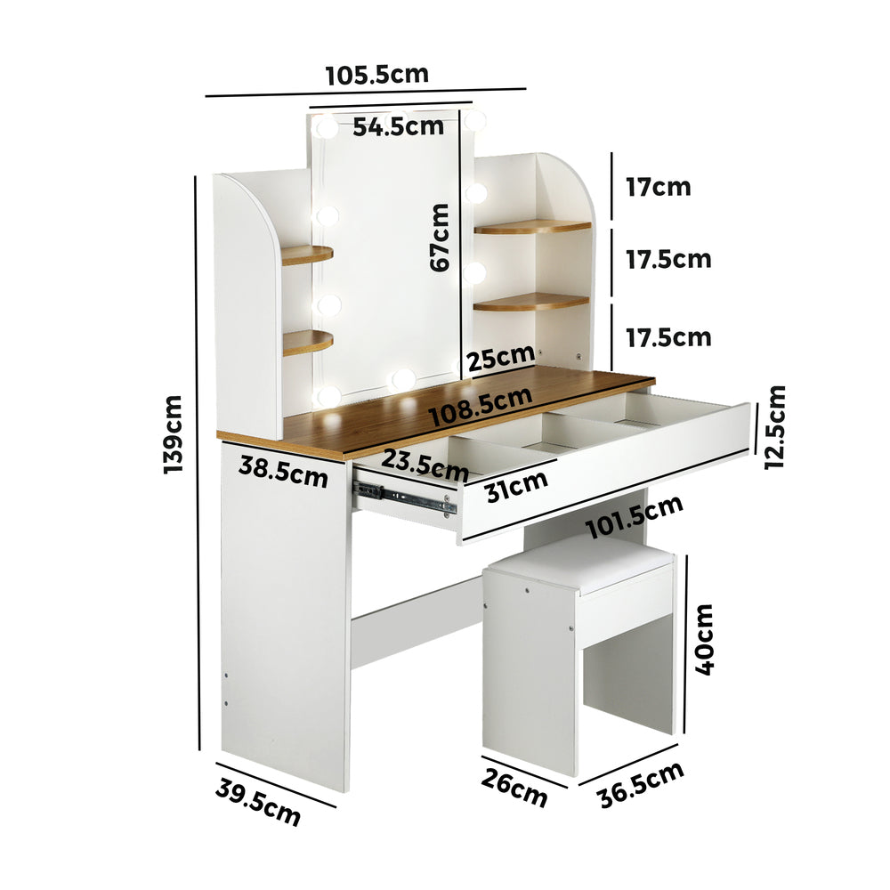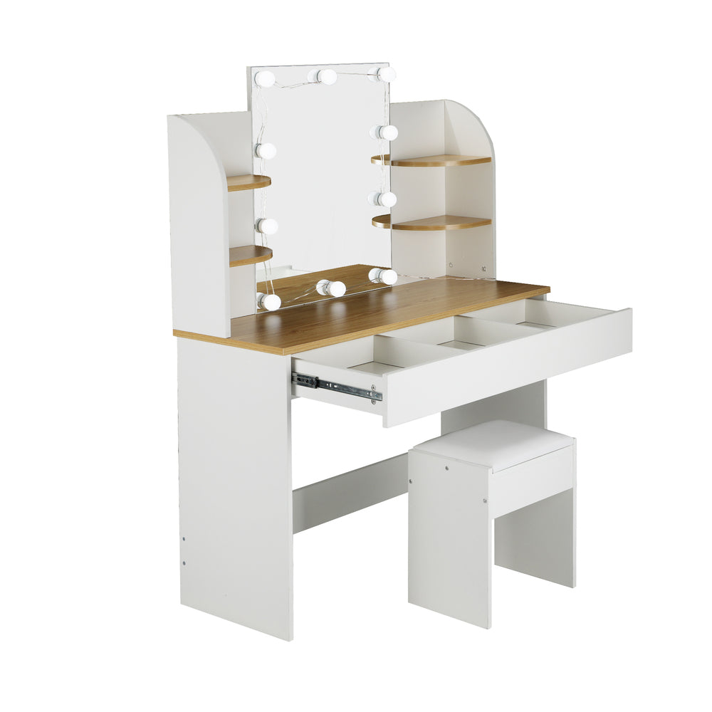 NNEED Dressing Table Stool Set Makeup Mirror 10 LED Bulbs