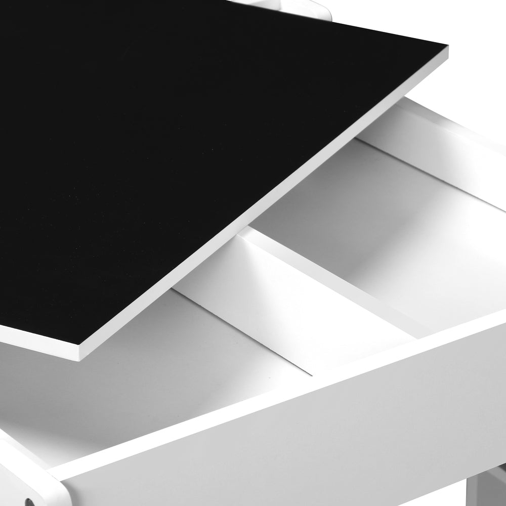 3-in-1 (Kids Table Chair Set) is a must-have for kids aged 3+. The thoughtfully-designed tabletop has two sides, one flat surface for dining and reading and the other chalkboard surface for drawing and playing. Beneath the easy-turn-over tabletop, there hide large storage compartments, ideal for kids to stow away their blocks, storybooks, chalk, crayons and other things. With sleek and stylish design, it's fit for living room, playroom, or kids' bedroom. This table and chair set is made from eco-friendly and non-toxic sturdy MDF board that offers solid support and long-lasting durability. It is also easy to assemble and clean. Oikiture, the perfect gift for your kids!