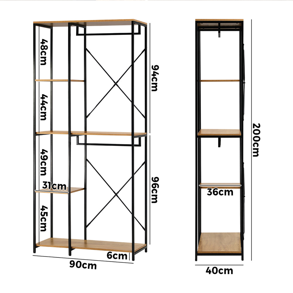 NNEED Large Open Wardrobe Hanging Rail 5 shelves