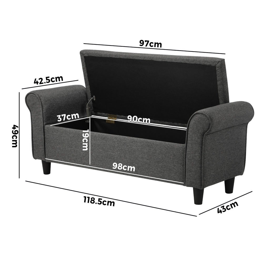 Perfect for keeping linens, cushions, and other items that you would like to keep away for the tidy look, this storage is there for you to utilize any time. Designed with metal hinges, you don't have to worry of holding the lid and store things in style.