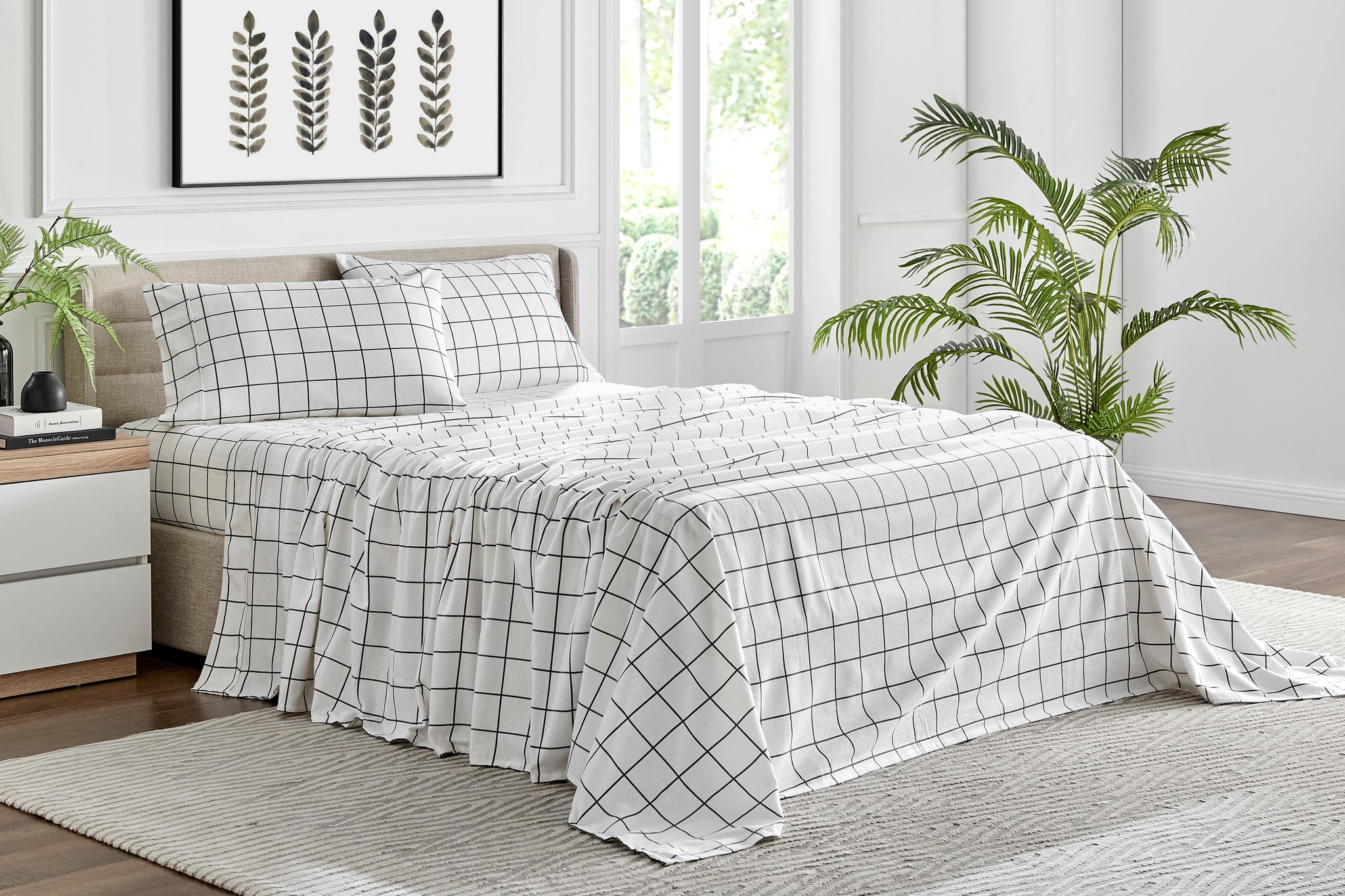 NNEKG 150GSM Check Print Flannelette Bed Sheet Set (Grey Double)