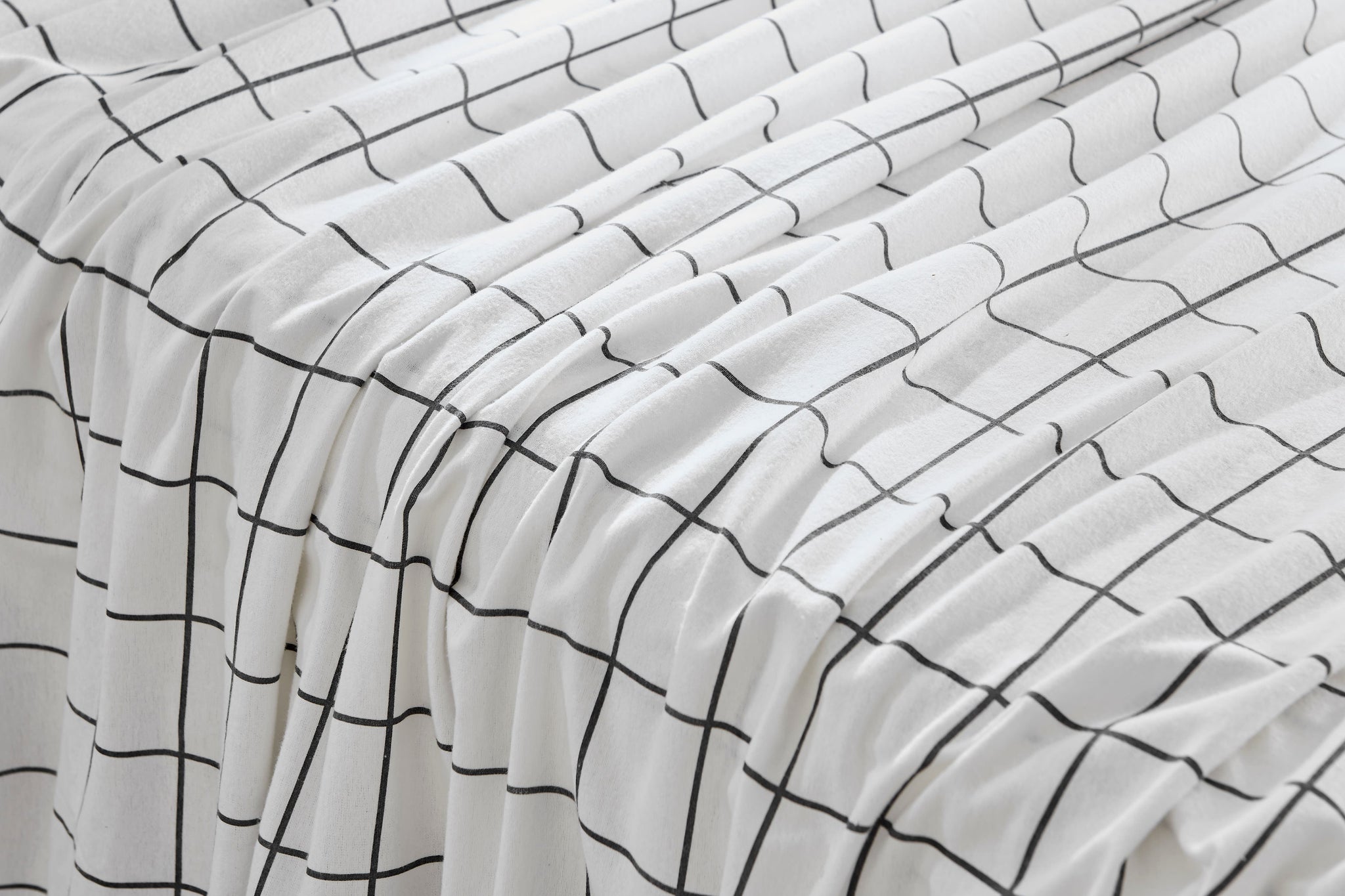NNEKGE 150GSM Check Print Flannelette Bed Sheet Set (Grey Single)