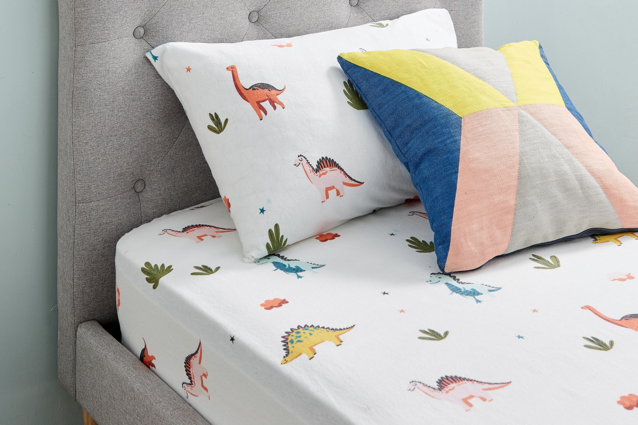 NNEKG 150GSM Flannelette Kids Bed Sheet Set (Dinosaur King Single)