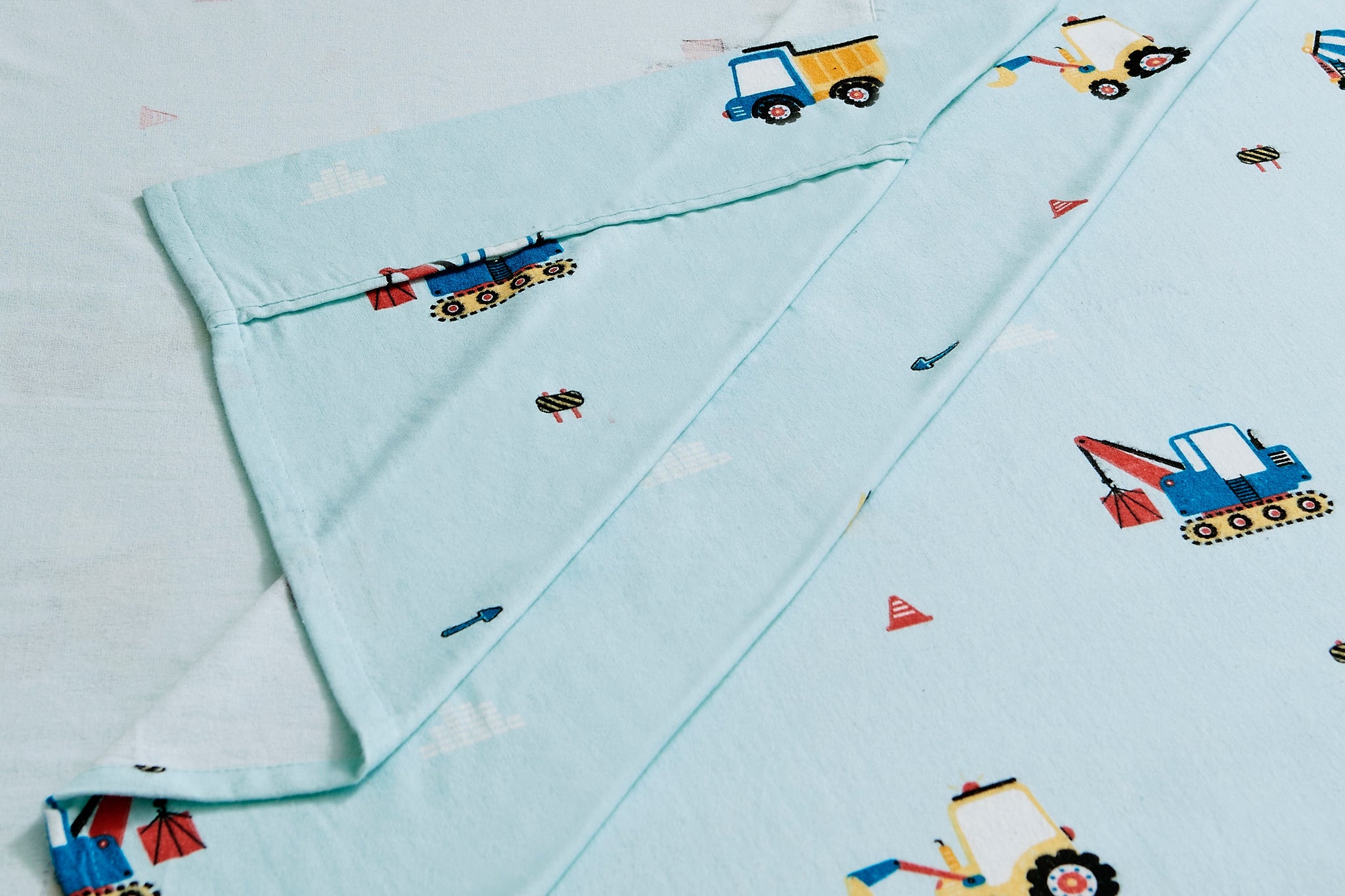 NNEKG 150GSM Flannelette Kids Bed Sheet Set (Trucks King Single)