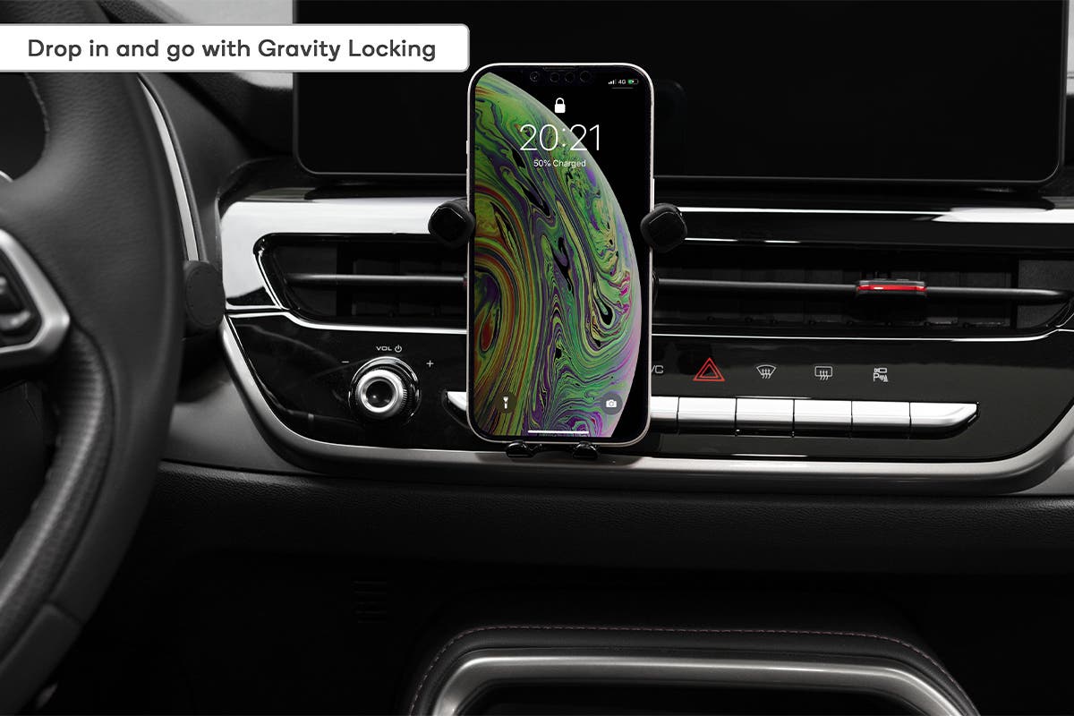 Keep your hands on the steering wheel and your eyes on the road thanks to this gravity phone holder that easily mounts on car vents or windscreen for safe, hands-free navigation when driving.