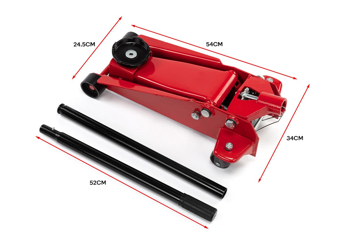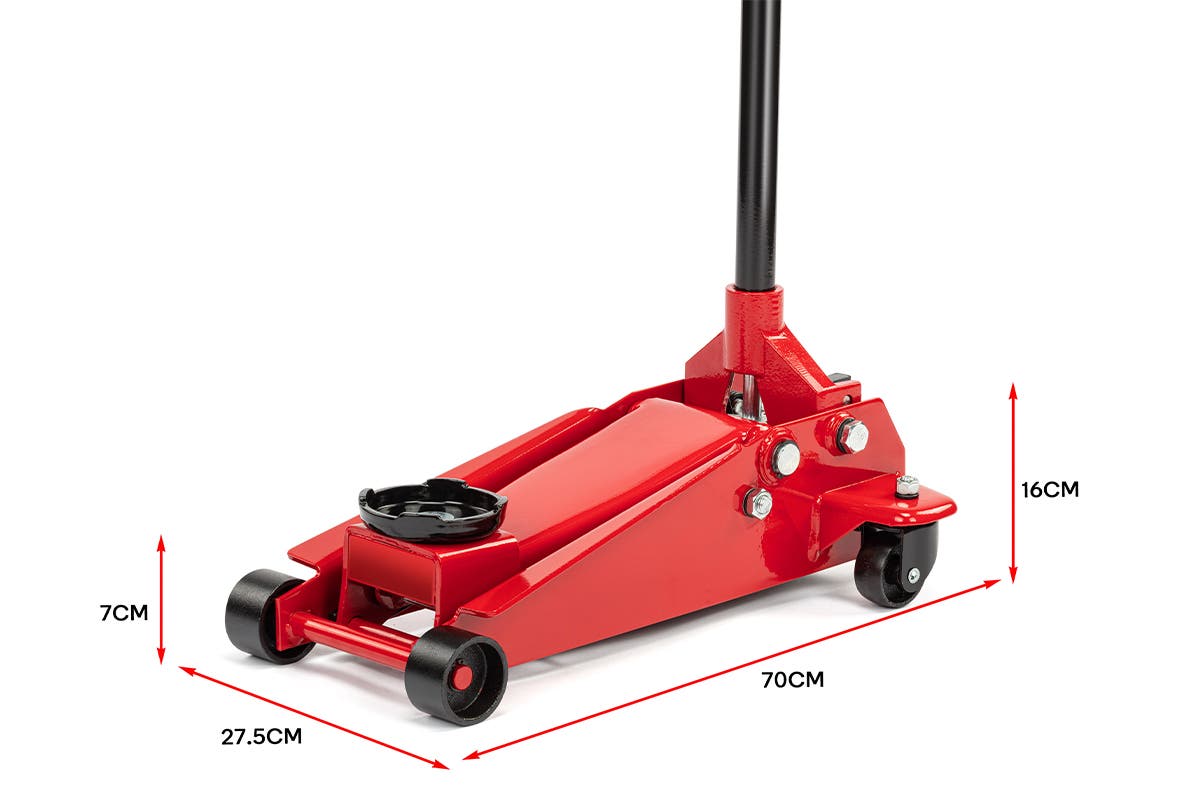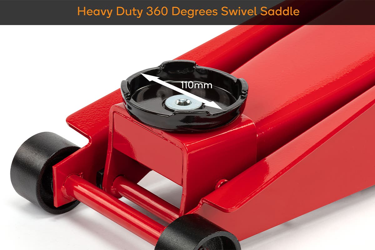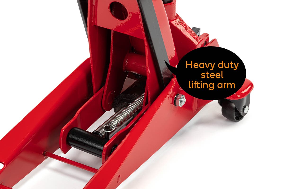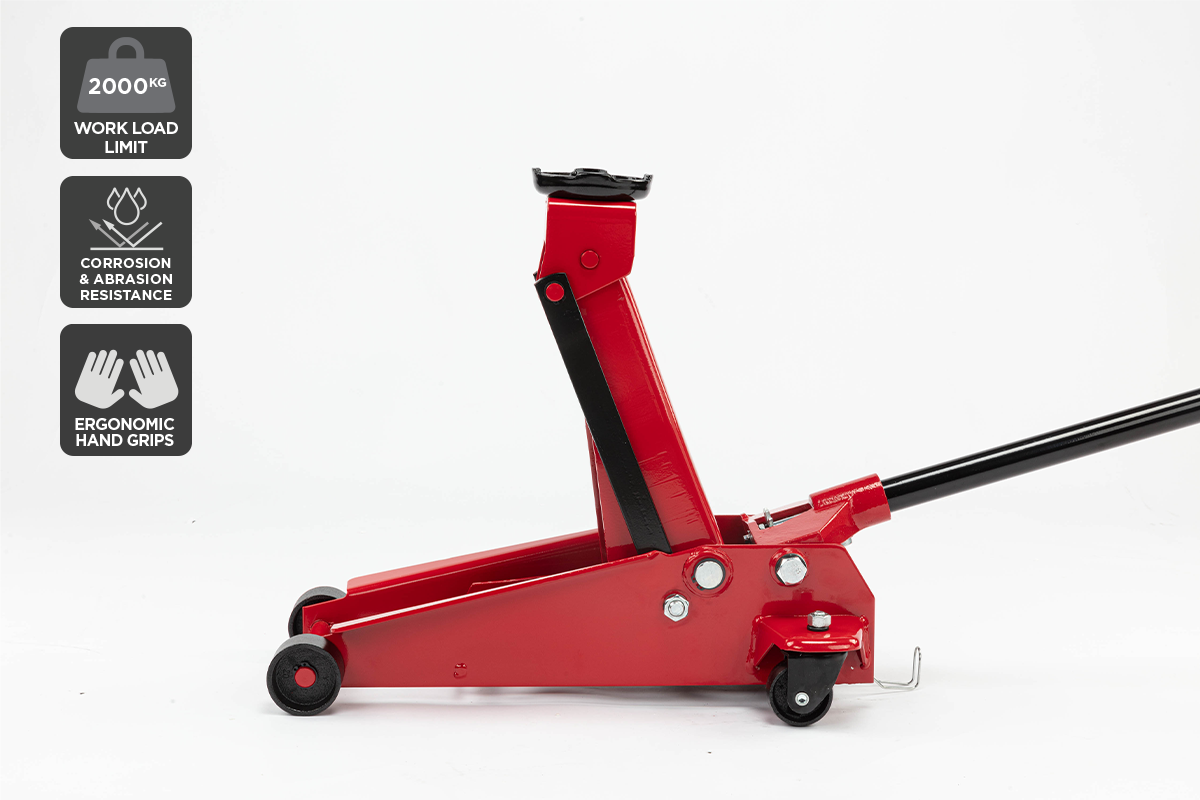 Complete DIY work on your car or change a flat tyre with ease thanks to the long, comfortable handle and maneuverable castors of this 2000kg load capacity trolley jack.