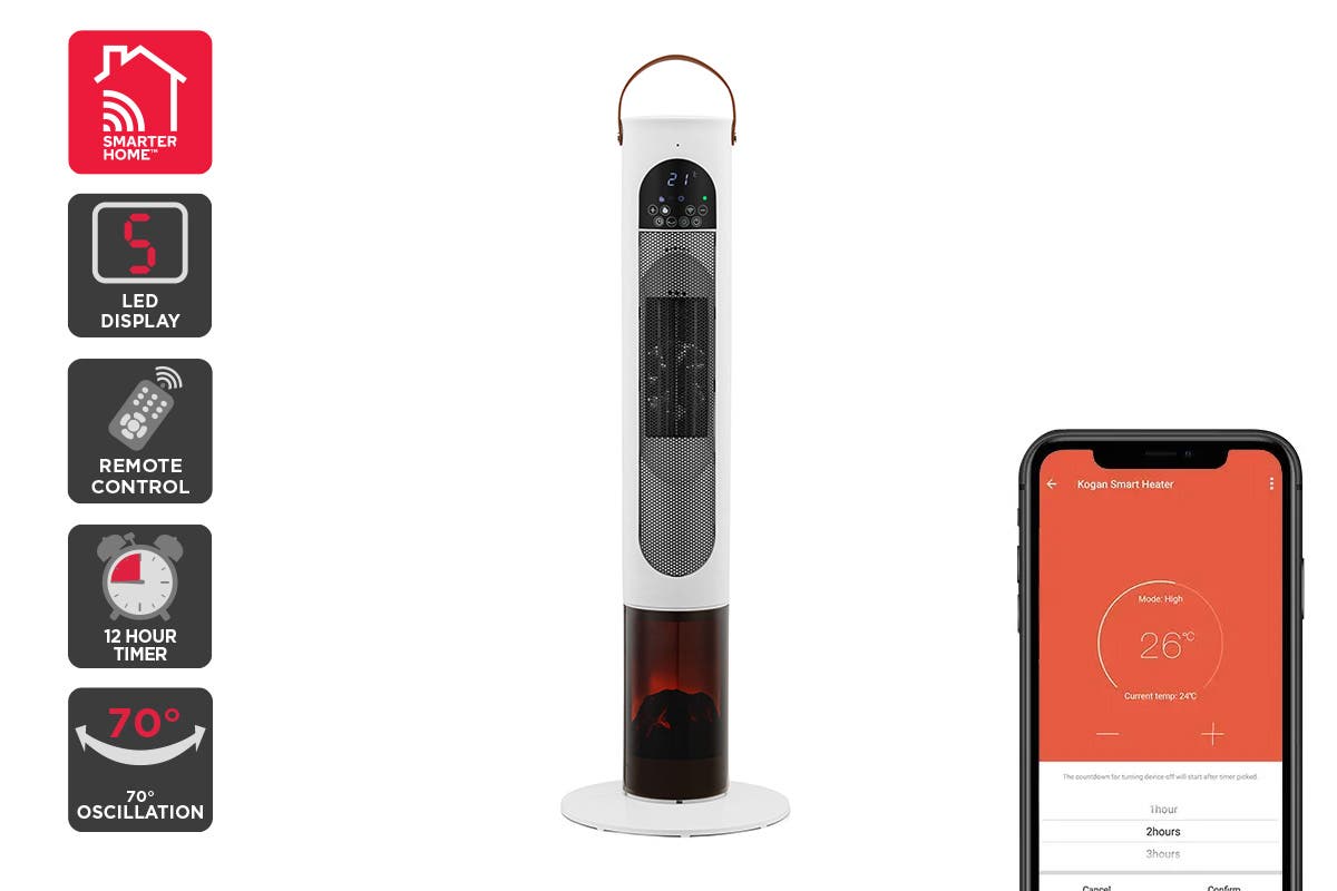 Control the warmth using only your smartphone thanks to the SmarterHome™ compatibility of the Kogan SmarterHome™ 2000W Tower Heater Fireplace Effect.