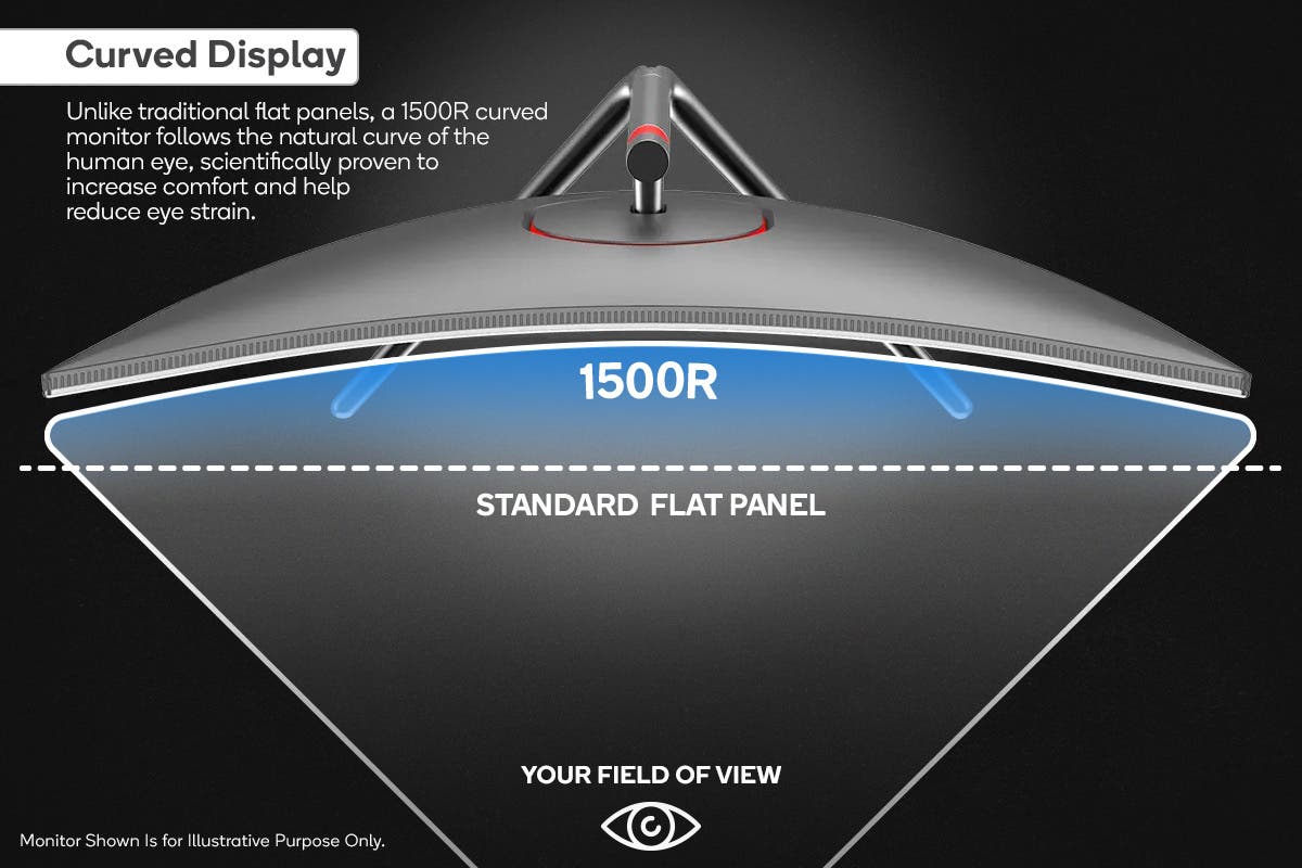 The 1500R screen curve of this gaming monitor follows the contours of your eye, offering more ergonomic visuals and helping to reduce eye strain during long gaming binges.