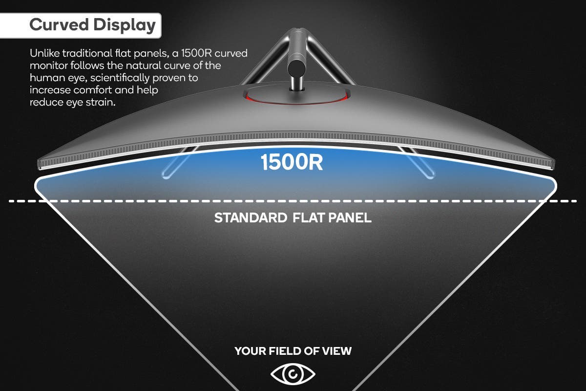 Lose yourself in the immersive curved screen, offering more ergonomic visuals and a wider field of view while helping to eliminate eye strain to draw you into the centre of the action.