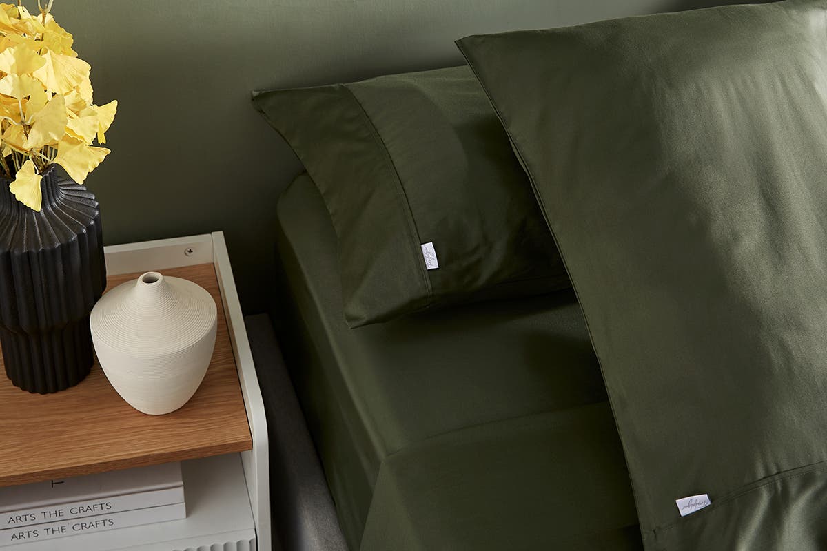 NNEKG 400TC Sateen Fitted Sheet (Olive Double)