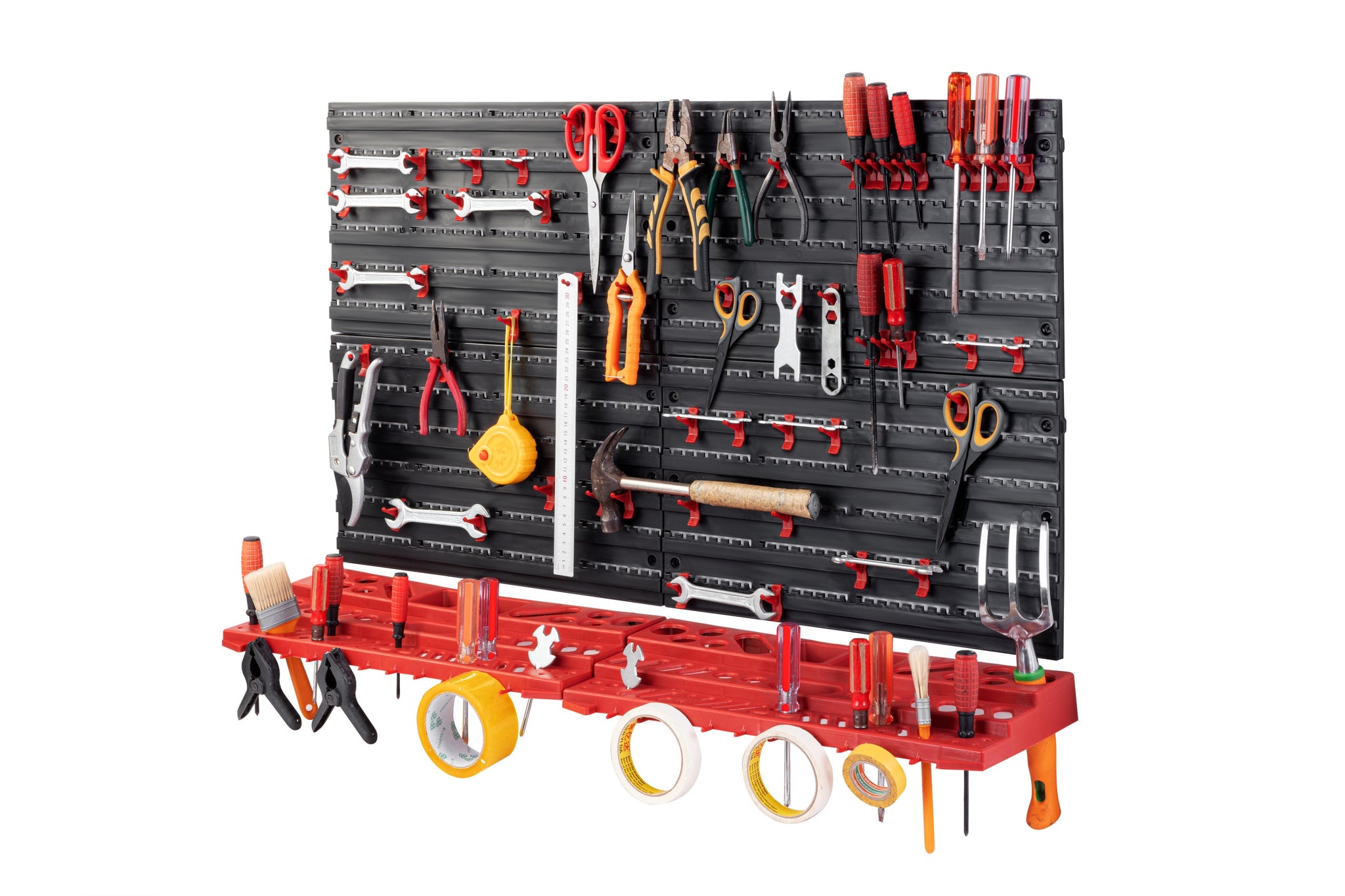 Colour code your storage with red and black bins in two different sizes. Tailor the storage to your preference and know exactly where your tools and accessories are for when you need them.
