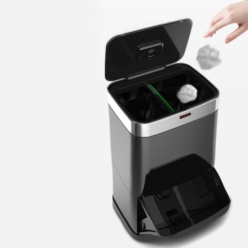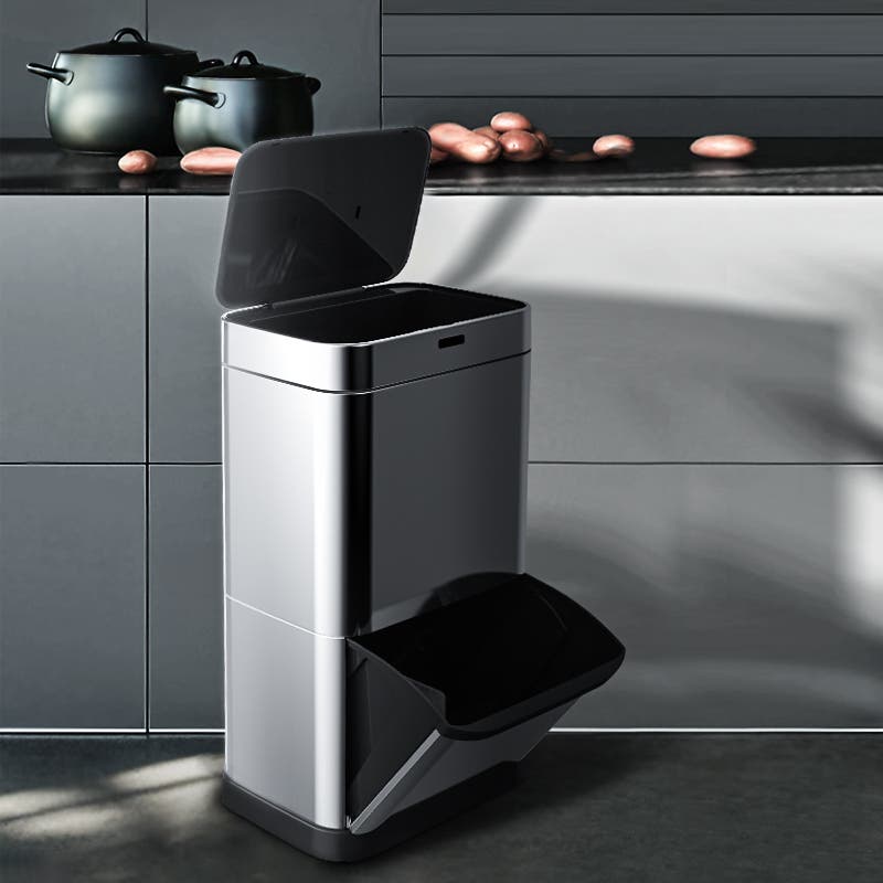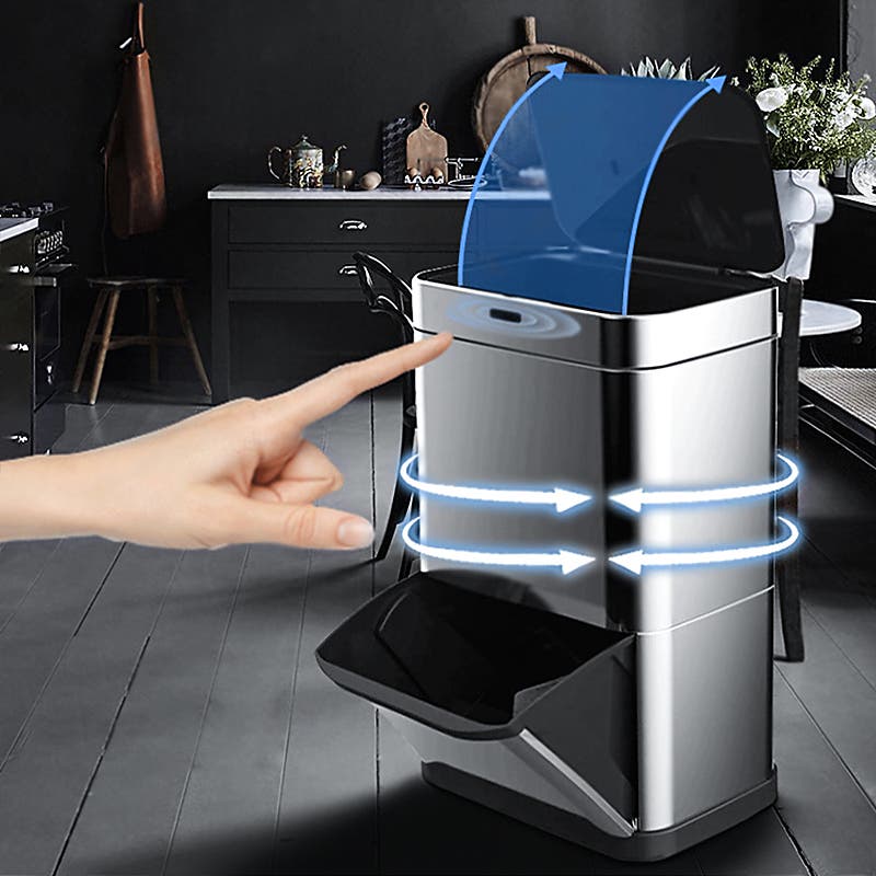 This intelligent motion sensor rubbish and recycling bin has dual compartments that are separated in a two-tier design that make it easy to split up your rubbish and recycling for easy disposal on bin day.