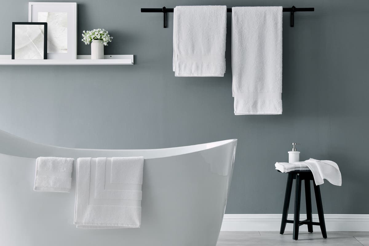 Introduce luxury to your bathroom with a set of towels and a bath mat made from Turkish cotton, renowned for its super soft and lustrous texture.