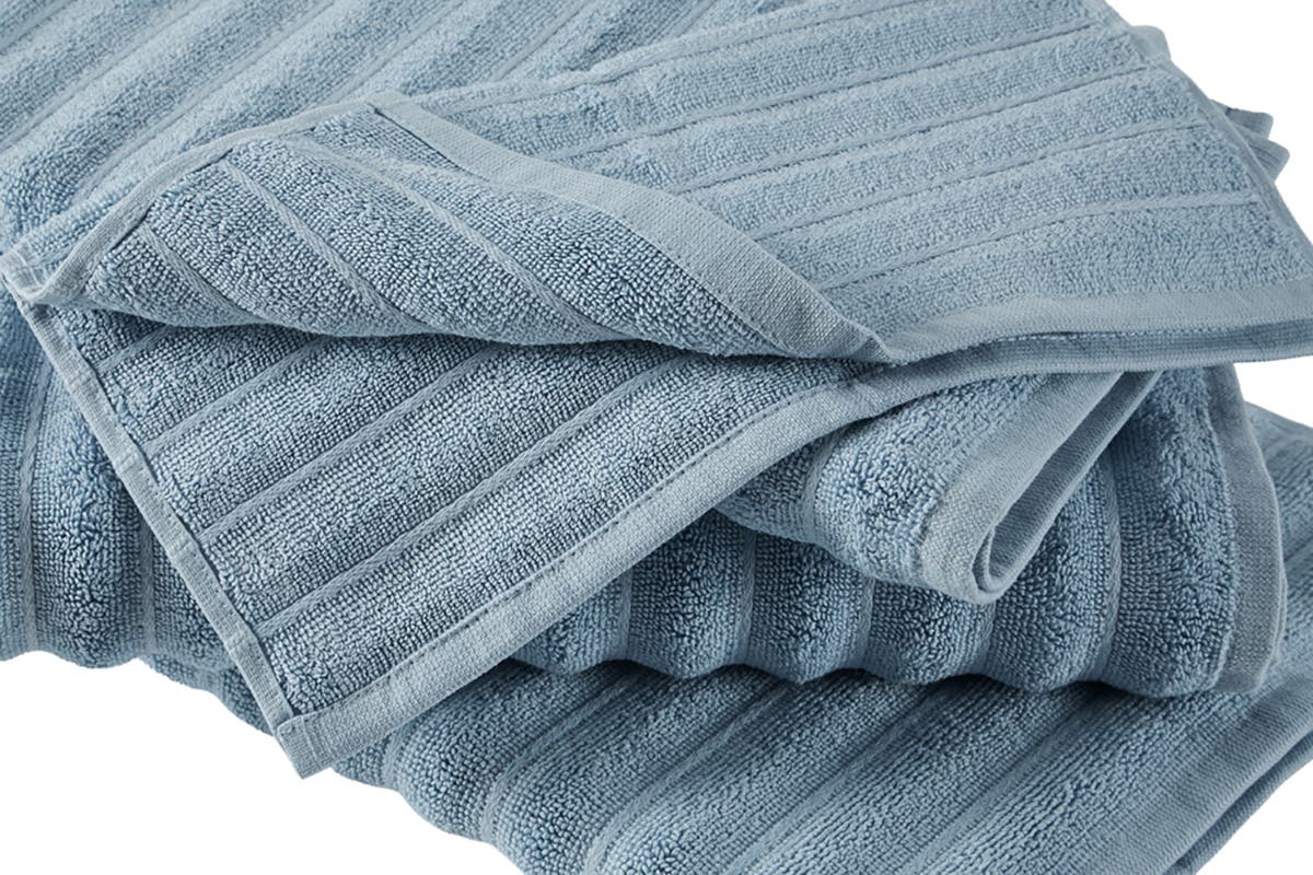 Love the feel of pure cotton against your skin with a set of ribbed towels and a bath mat that adds texture and style to your bathroom decor.