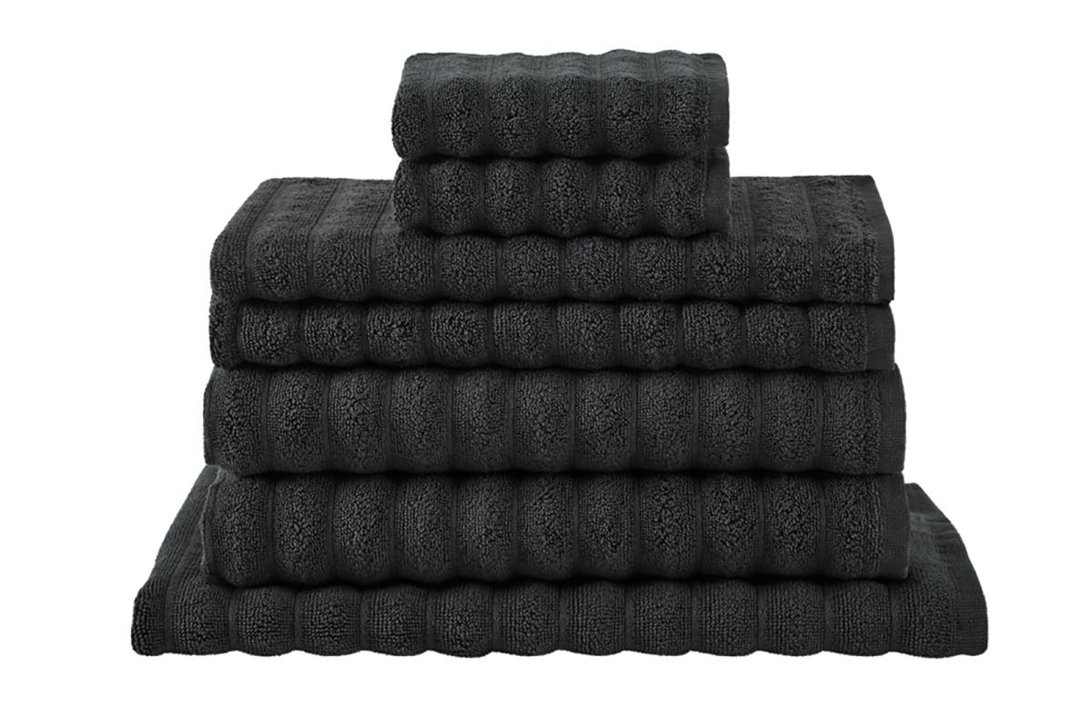 NNEKG 7 Piece 650GSM Williow Ribbed Cotton Towel Set (Charcoal)