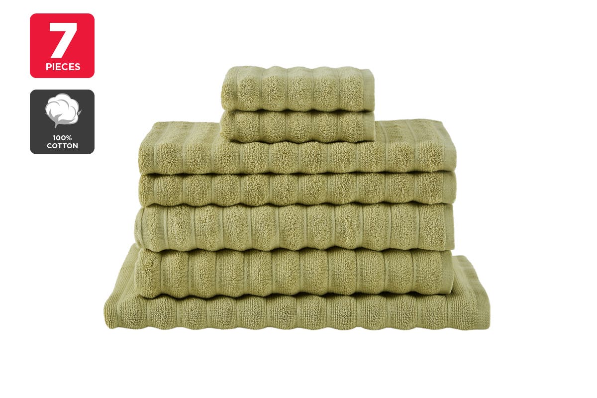 NNEKG 7 Piece 650GSM Williow Ribbed Cotton Towel Set (Chartreuse)