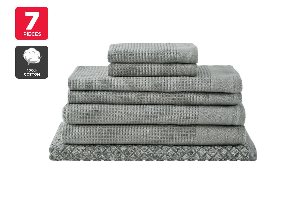 NNEKG 7 Piece Cotton Waffle Towels (Dove)