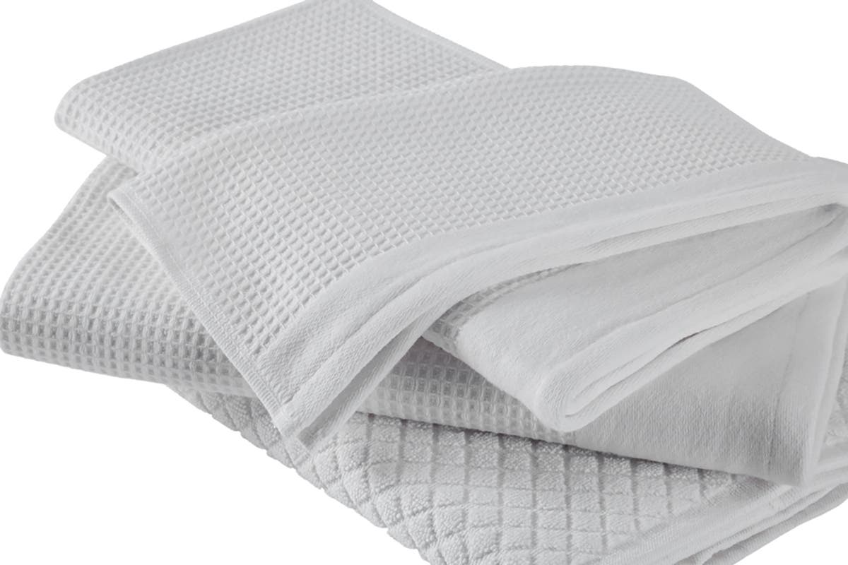 With a unique honeycomb pattern that creates more surface area, these waffle towels feature better absorbency and a faster drying time than regular towels.