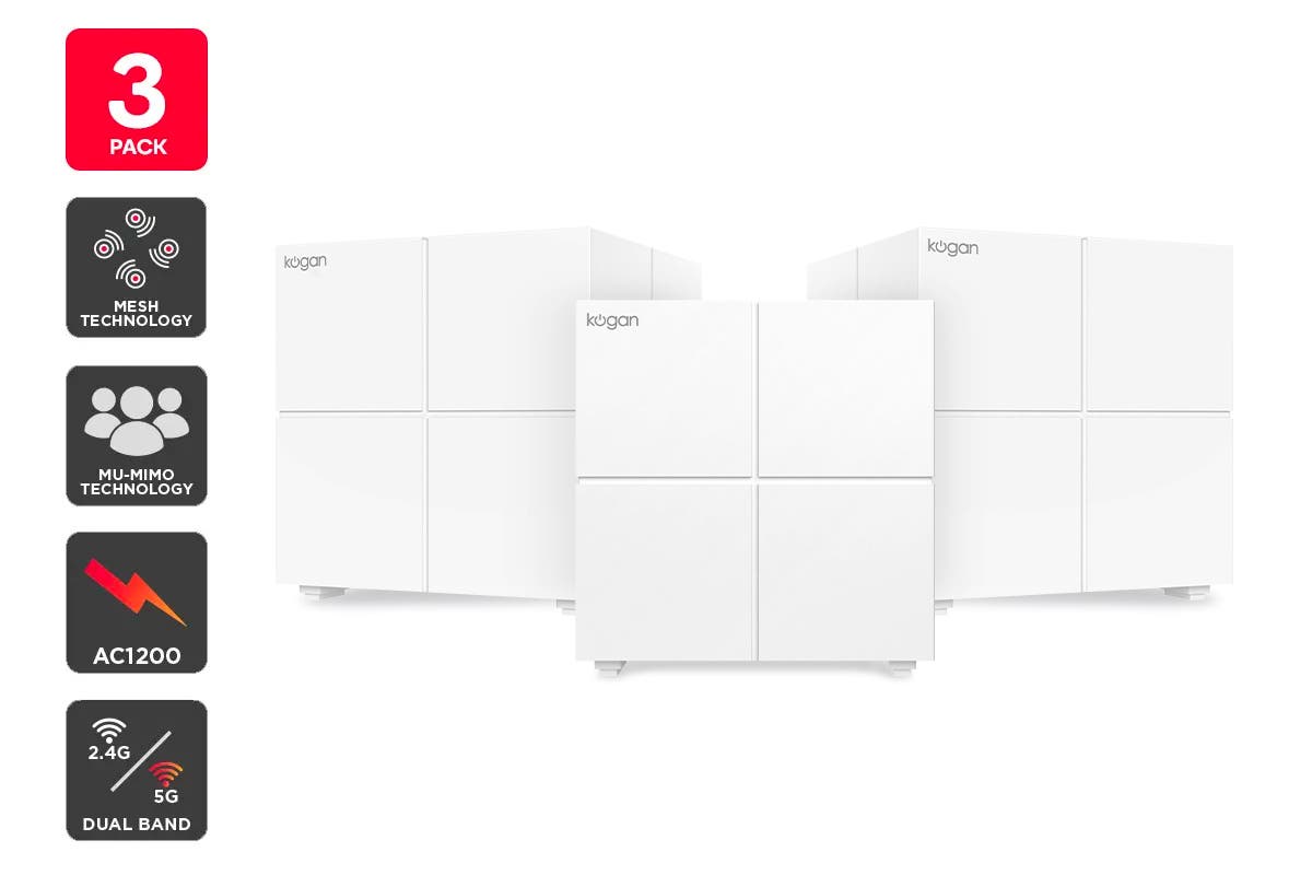 Expand your home Wi-Fi network so that the whole home or office can access a smooth and uninterrupted internet connection with the dual-band Wi-Fi and whole-home coverage of the Kogan Wi-Fi AC1200 Whole-Home Mesh 3 Pack (Wi-Fi 5).