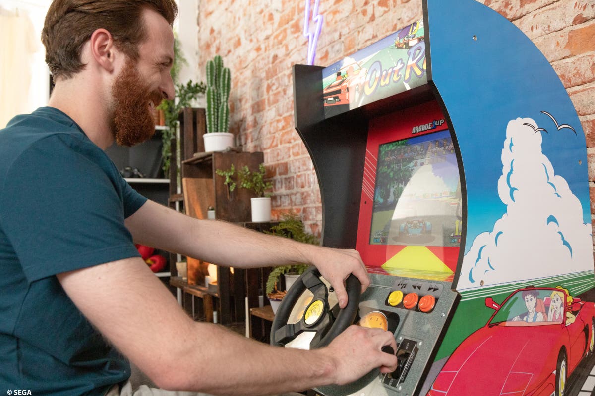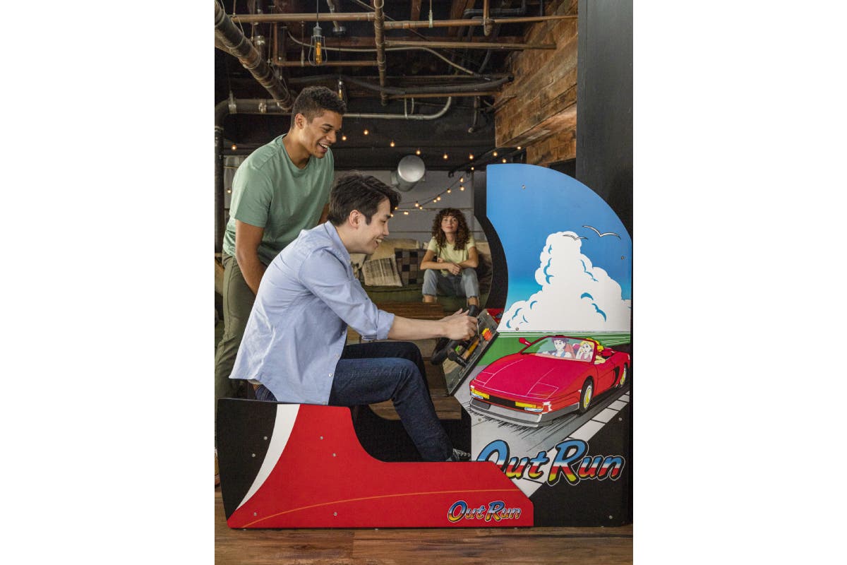 Sit down and relax. It’s time to hold on tight for some retrogaming fun with the Arcade1Up Outrun Seated Arcade Machine.