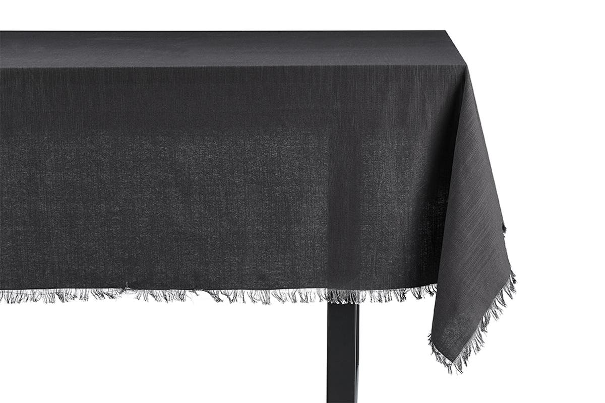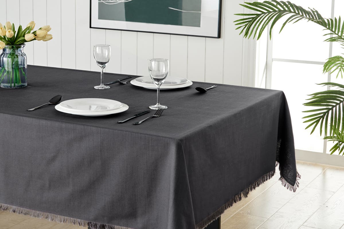 NNEKG Ayra Fringed Charcoal Rectangle Table Cloth (150 x 300cm)