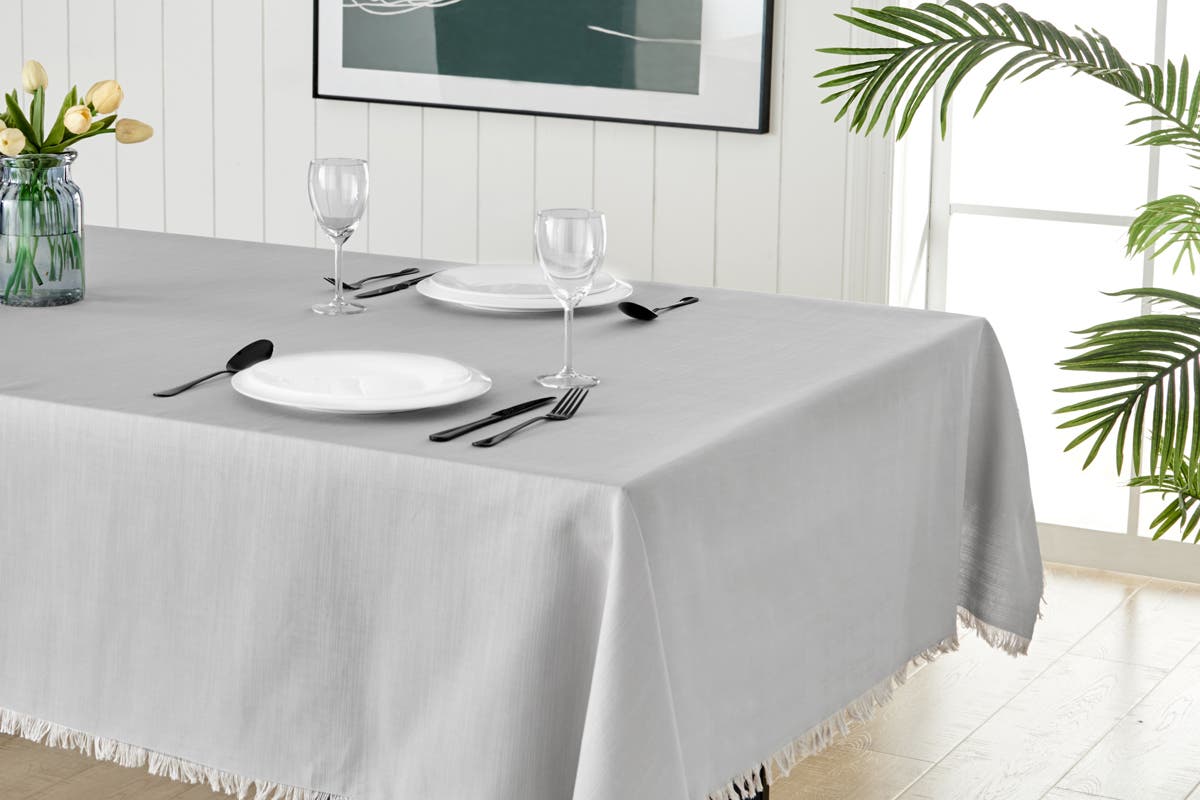 NNEKG Ayra Fringed Silver Rectangle Table Cloth (150 x 300cm)
