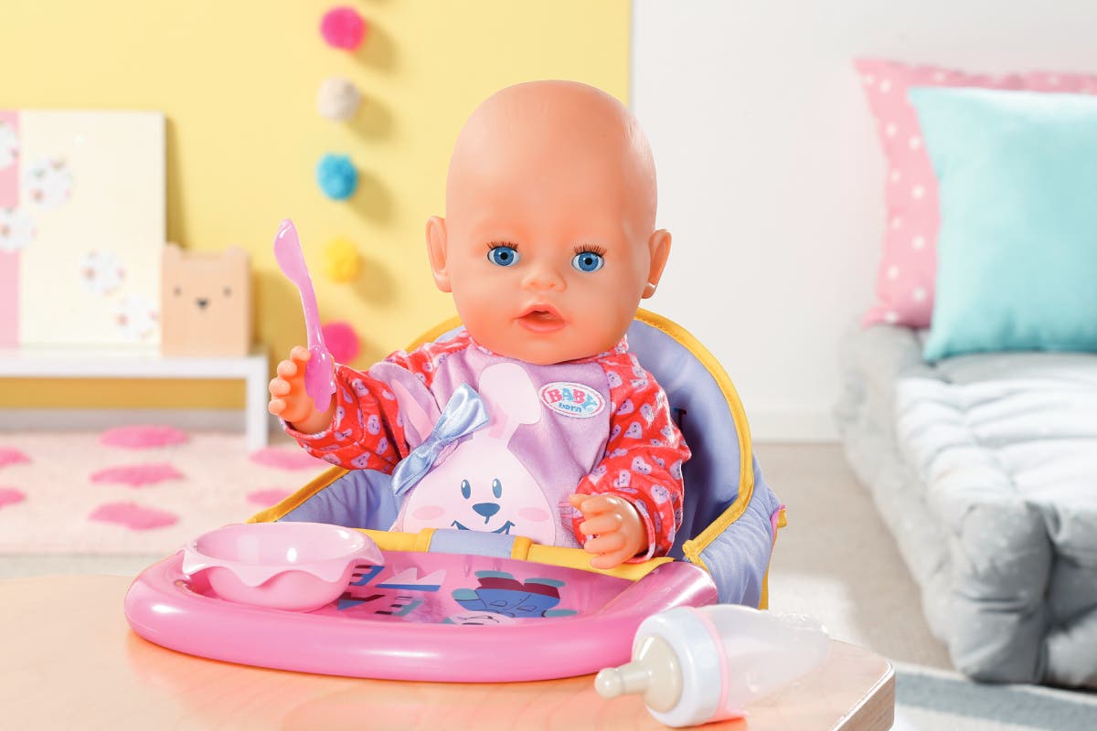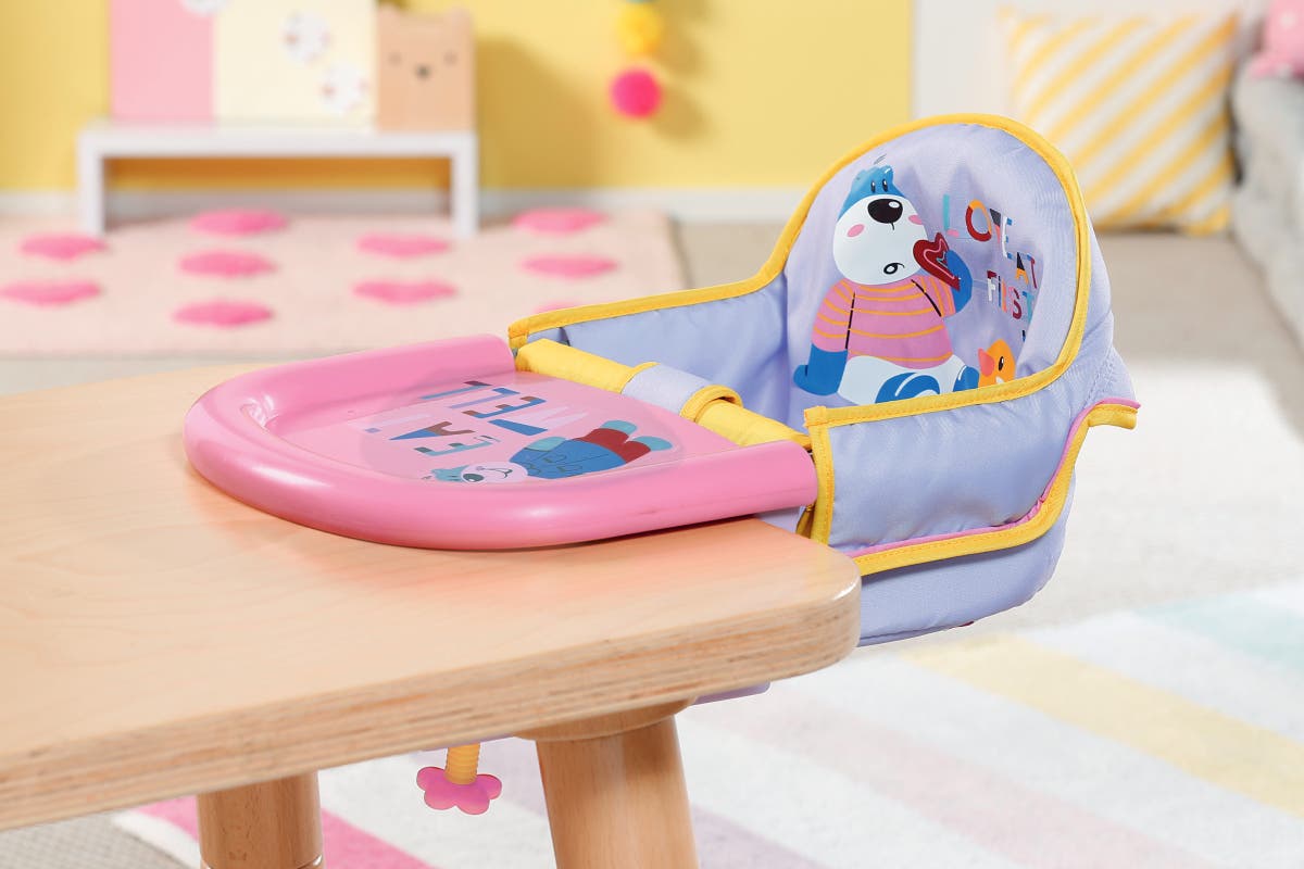 In the Baby Born Table Feeding Chair for table tops of 15-40mm, Baby Born can always join the meal. High-quality accessories for the Baby Born branded doll.
