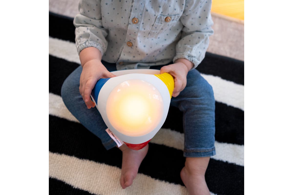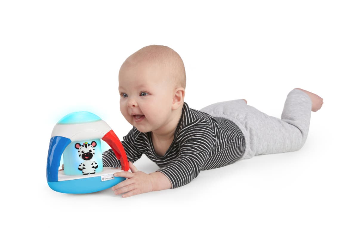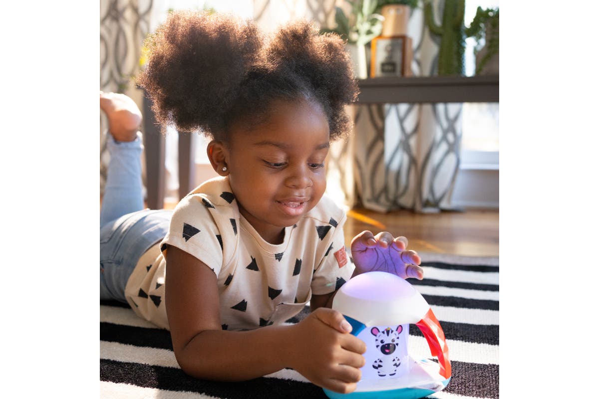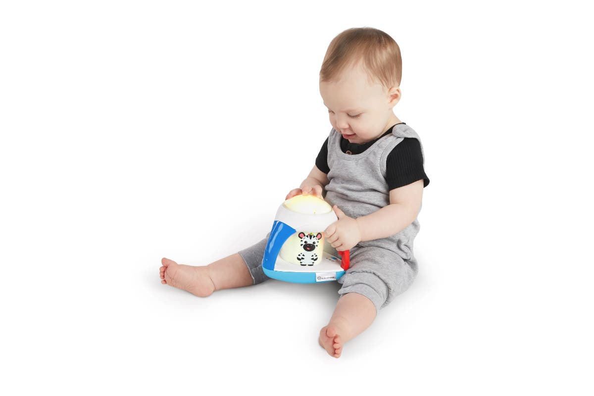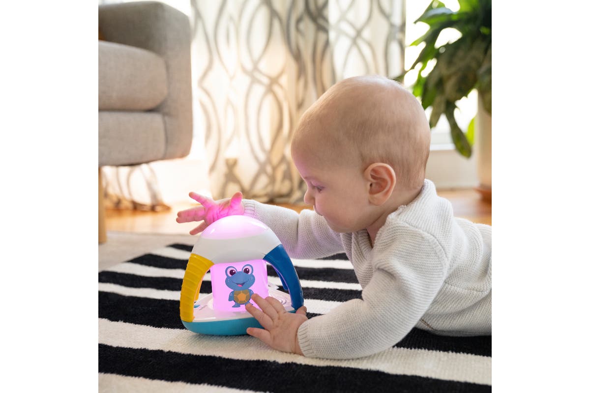 The Baby Einstein Curiosity Kaleidoscope Electronic Toy encourages exploration through play. By squeezing the handle, the corresponding hue will light up in the kaleidoscope dome. When the toy glows, the baby will hear the name of the colour!