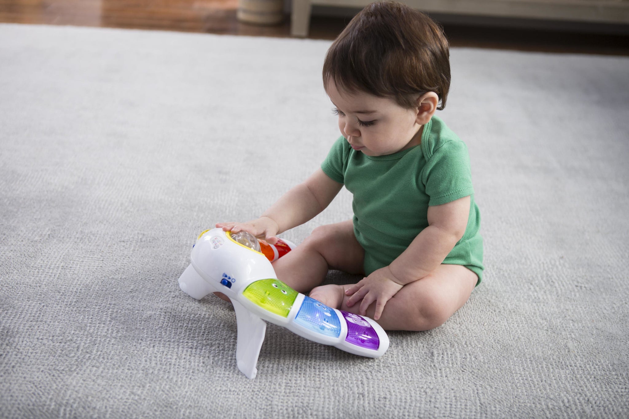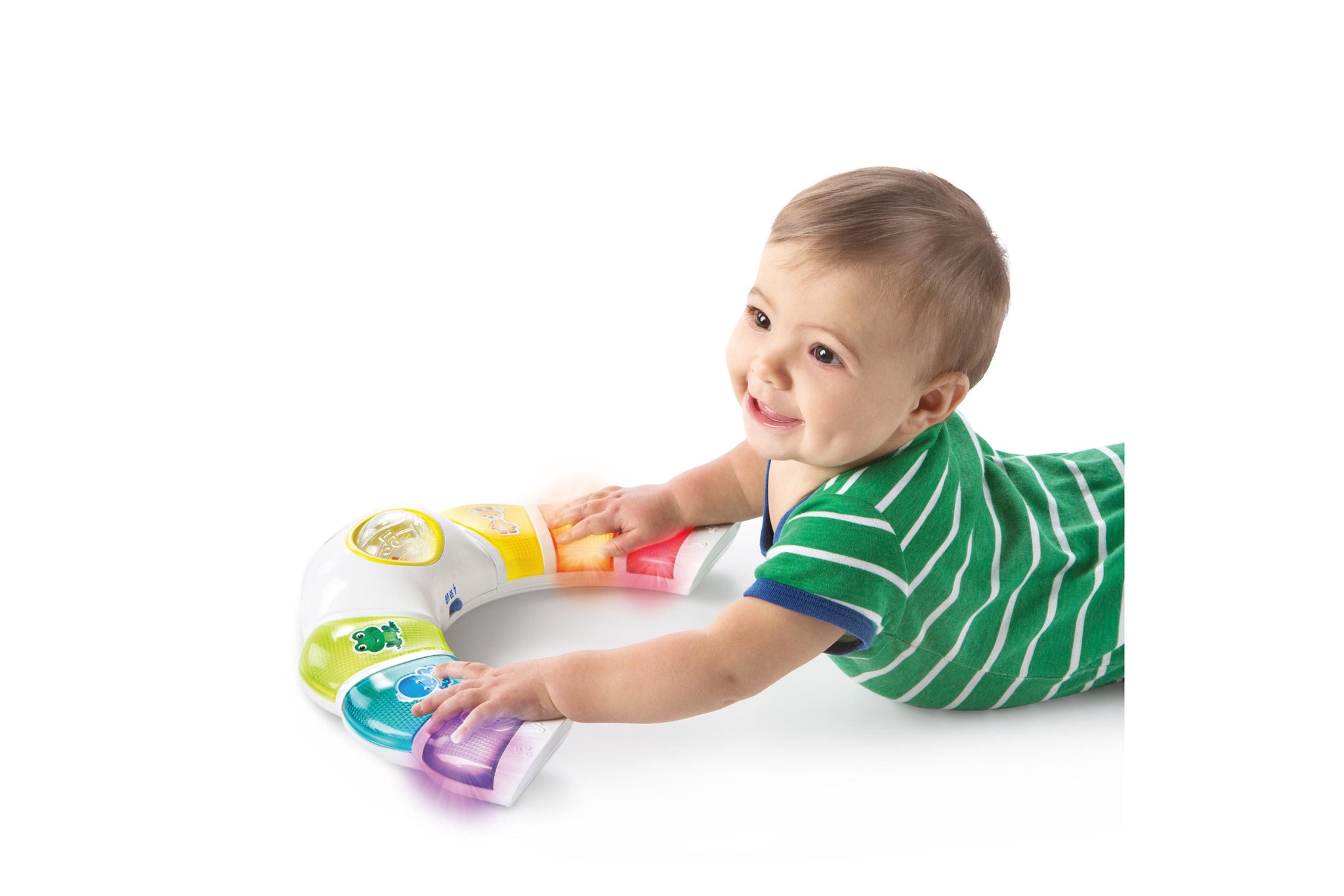 Make tummy time fun and engaging with the enriching content of the Baby Einstein Glow & Discover Light Bar Activity Station. This easy to activate toy bar is fun and interactive for little ones.