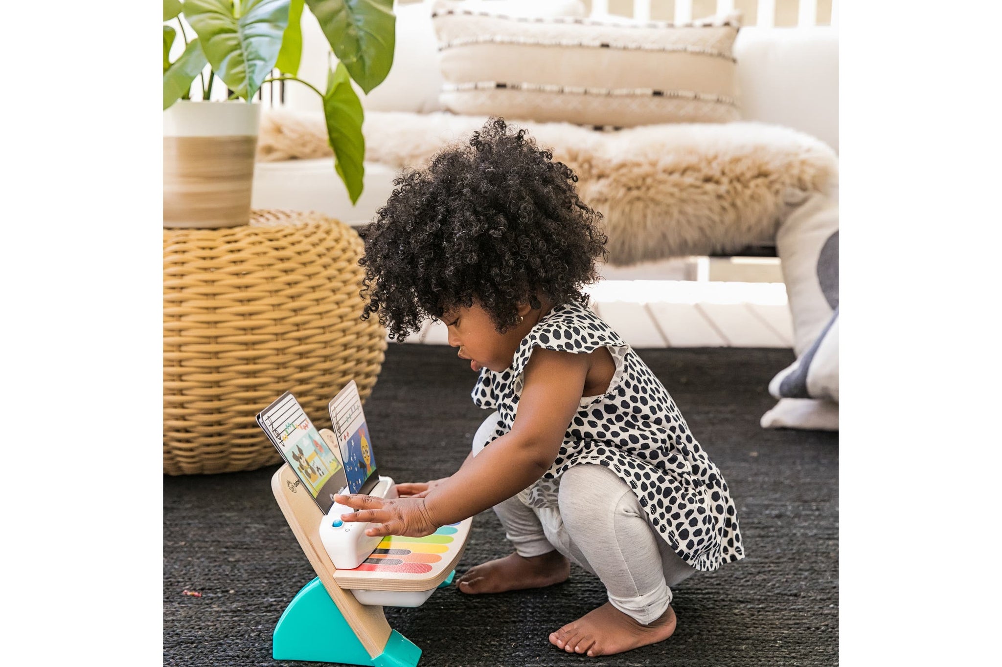 With the delicate touch of her little fingers, the Baby Einstein Magic Touch Piano Musical Toy will let baby create thousands of different songs. Made from wood, this piano toy features magic touch technology – no buttons or keys needed.