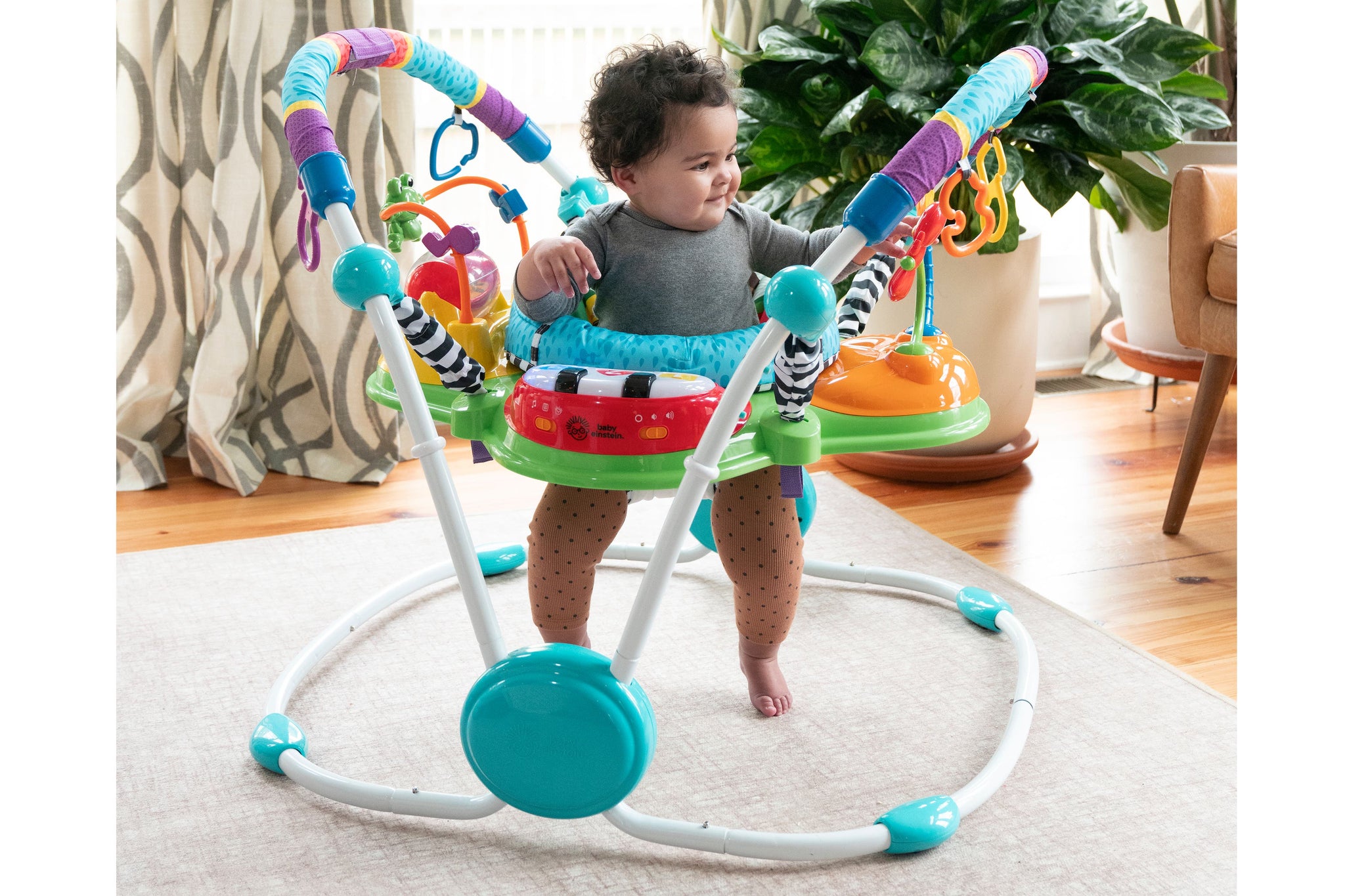 The Baby Einstein Neighbourhood Friends Activity Jumper will captivate your baby like no other activity jumper can. With 360° of multi-sensory activities, your baby can swivel and play every which way.