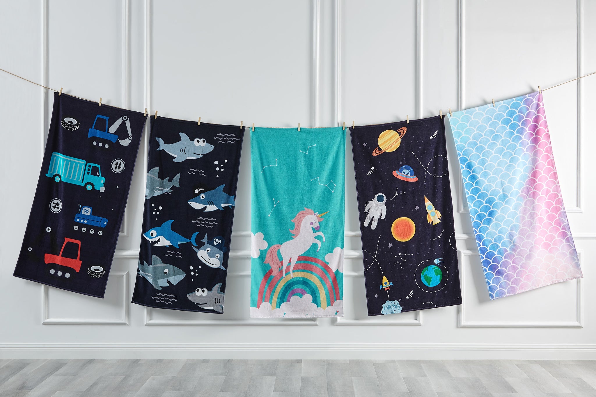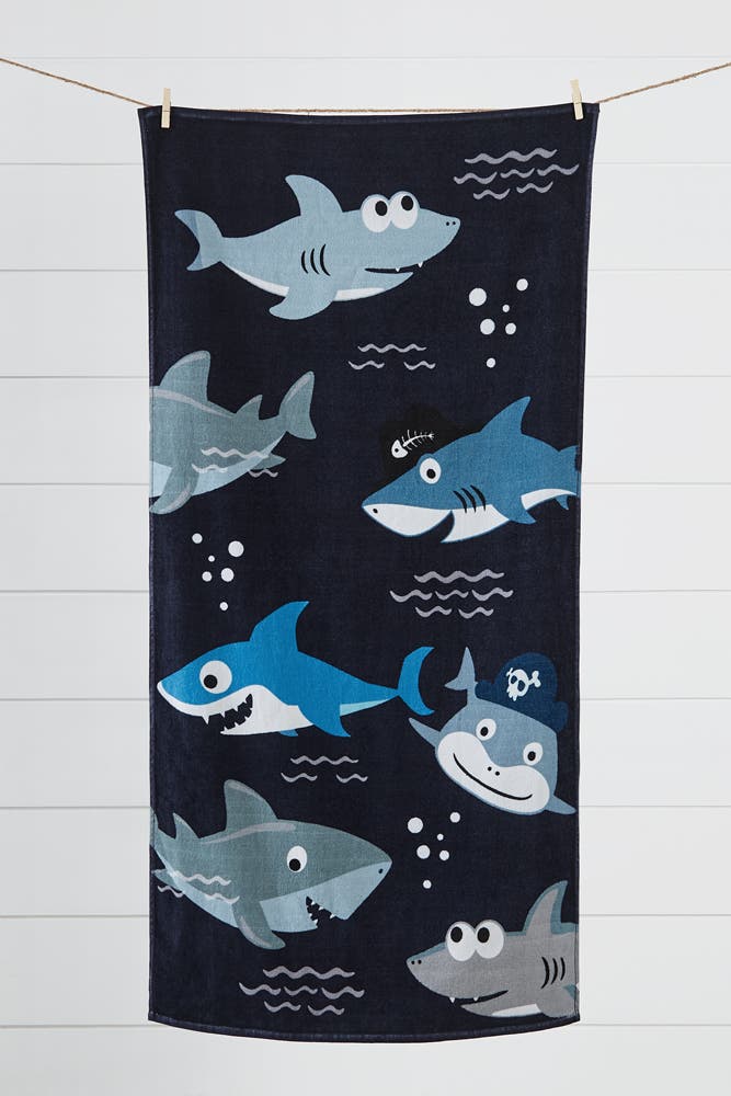 Bring a splash of bright design to your summertime with this cute baby shark beach towel that adds extra excitement to beach trips and helps your kid dry off after swimming.