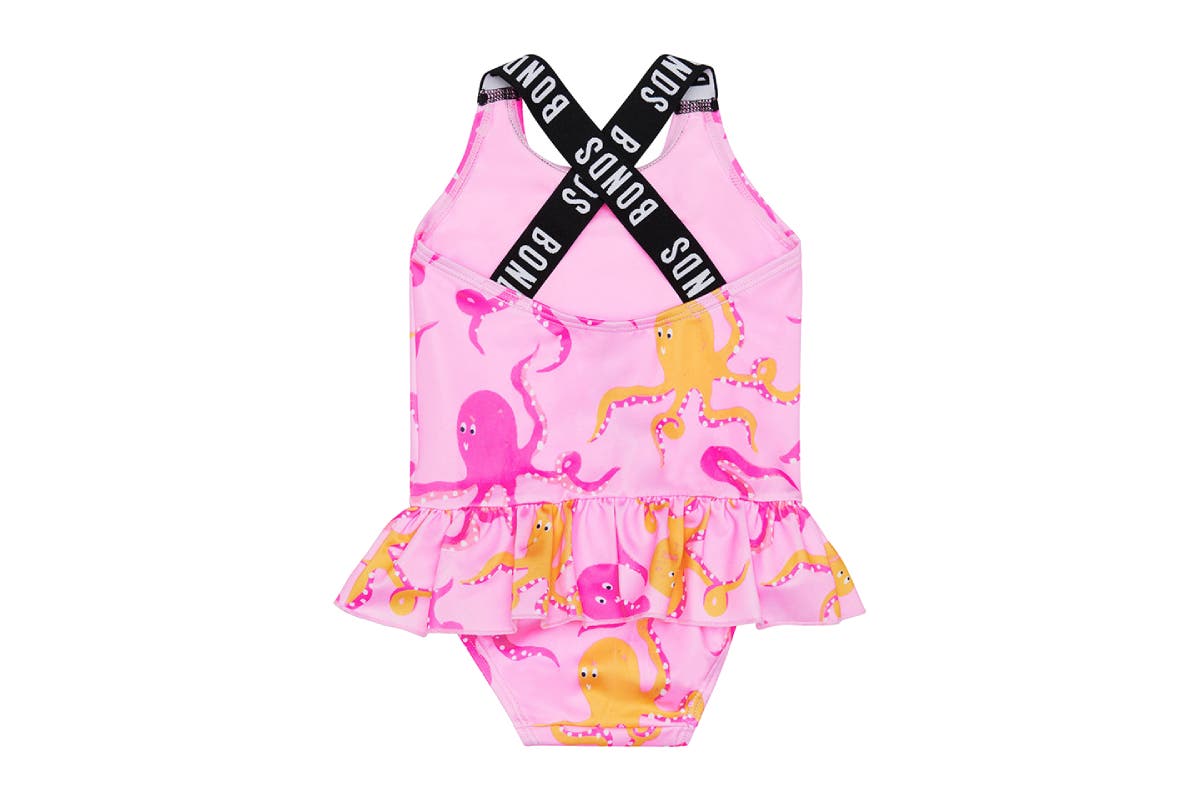 The Bonds Baby Swim Frill One Piece is designed with recycled polyester yarn featuring gorgeous prints that are easy to spot during swim time.