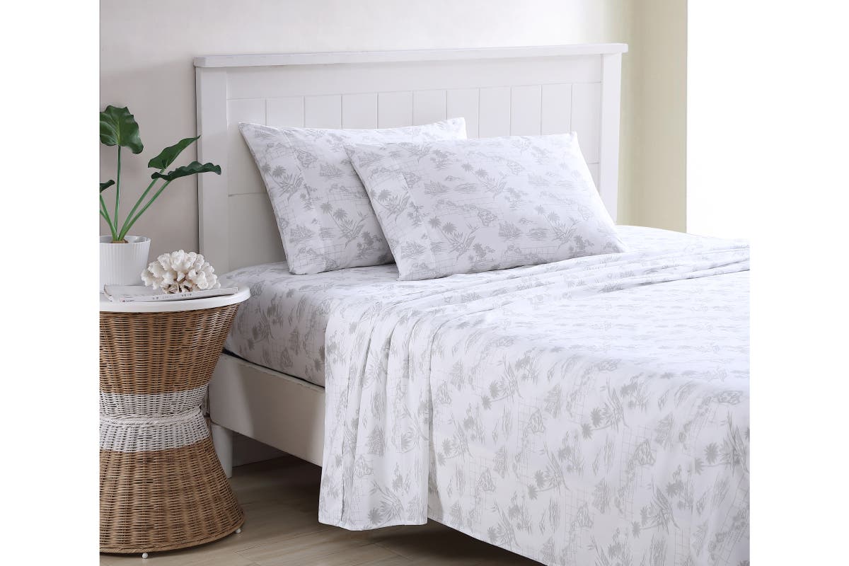 Update your bedding ensemble with a new sheet set from Tommy Bahama. Choose from a variety of gorgeous prints, each constructed with crisp, cool-touch cotton percale that work to reduce overheating and promote a restful night’s sleep. Sheet sets are machine washable for easy and convenient care.