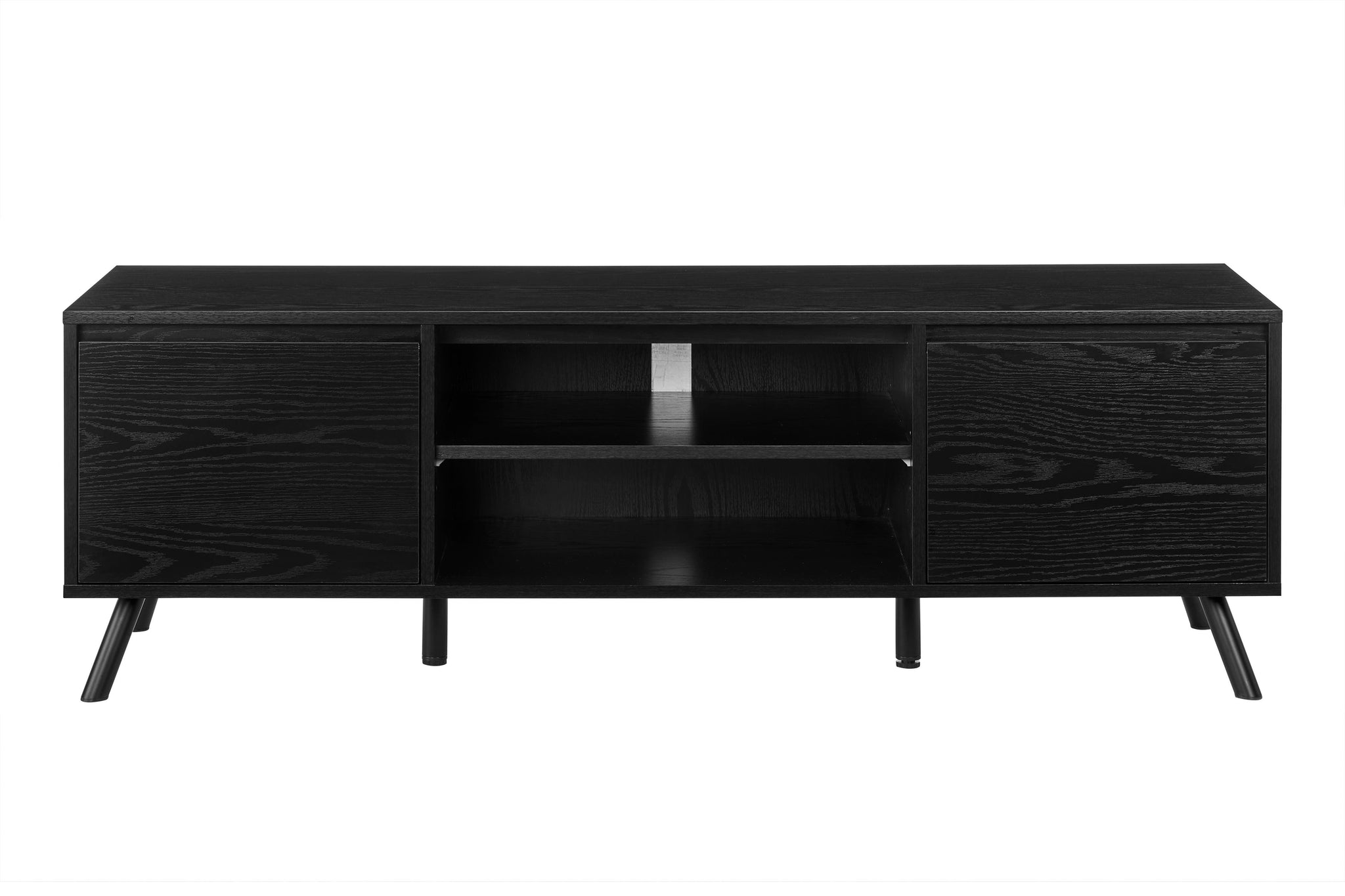 This black entertainment unit is quick and easy to assemble, while the hardy, scratch-resistant melamine material ensures durability so that you will be able to enjoy this piece for years to come.