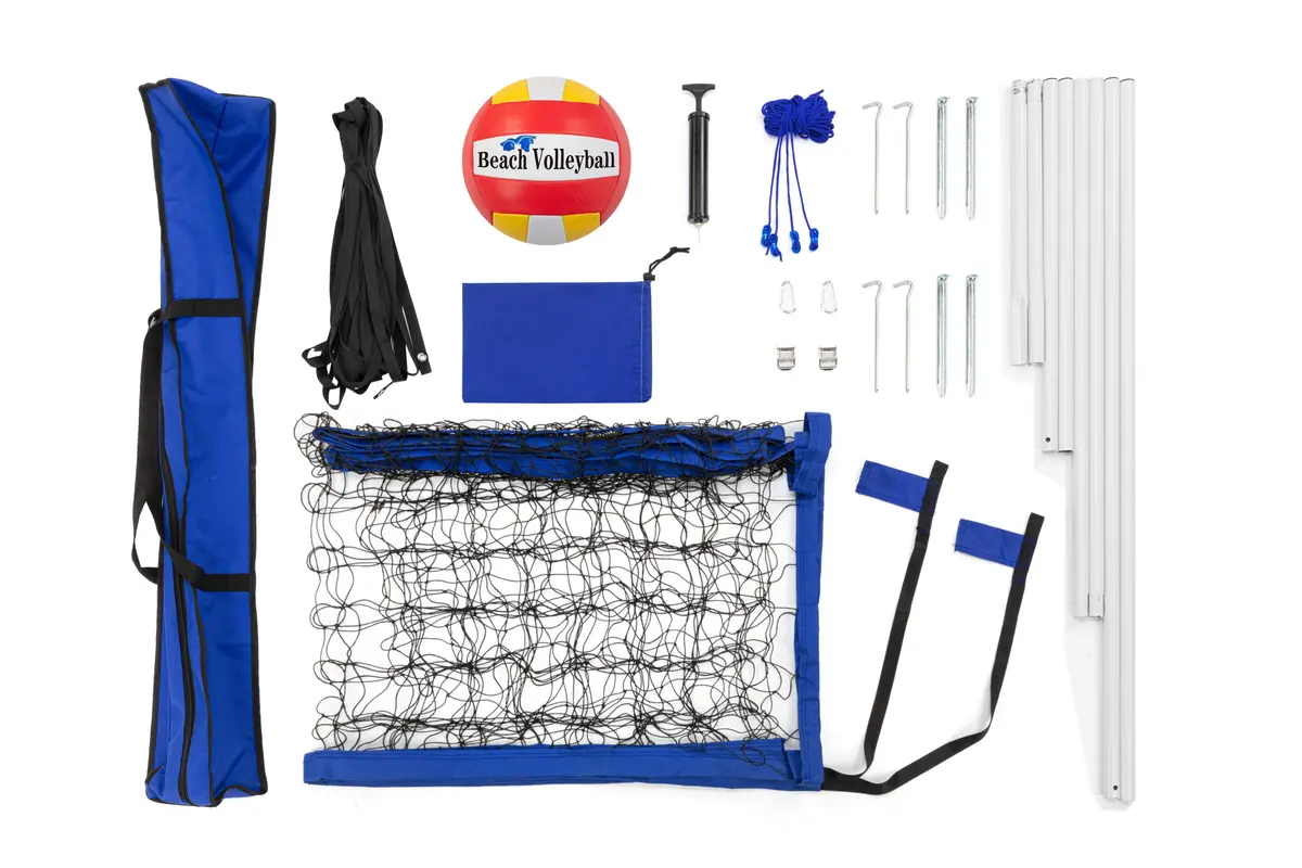This comprehensive set includes all the beach volleyball gear you need to play endless games, including a net, line markers to create a court, a volleyball, an inflation pump, pegs and more.