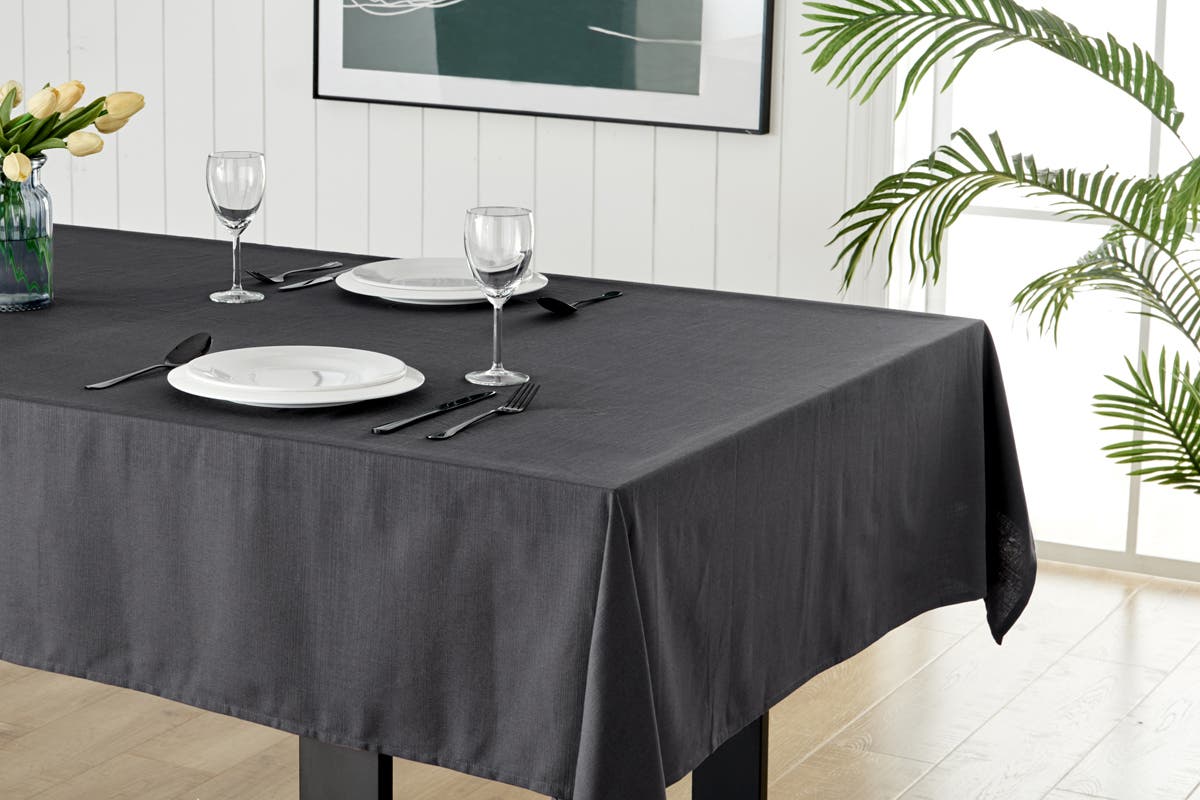 Protect your dining table from scratches and scuffs thanks to this large classic charcoal tablecloth that’s made from 100% cotton and is perfect for both everyday dining and dinner parties.