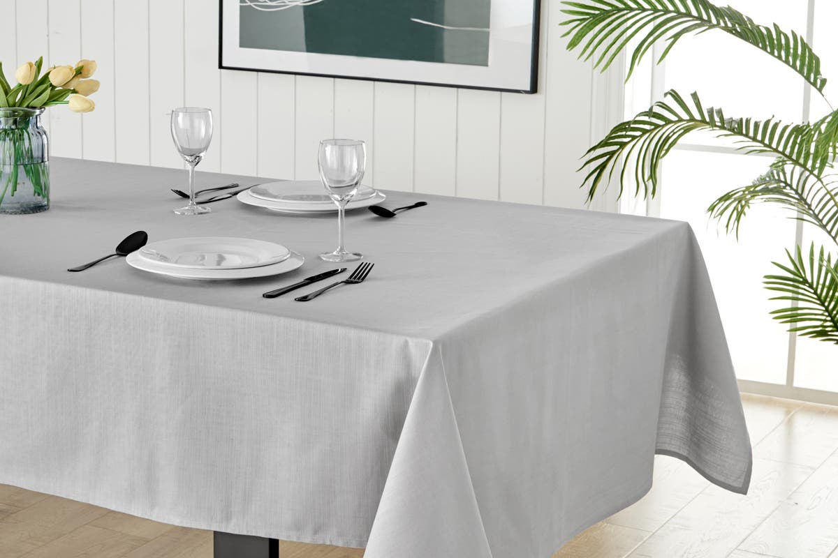 Protect your dining table from scratches and scuffs thanks to this large classic silver tablecloth that’s made from 100% cotton and is perfect for both everyday dining and dinner parties.