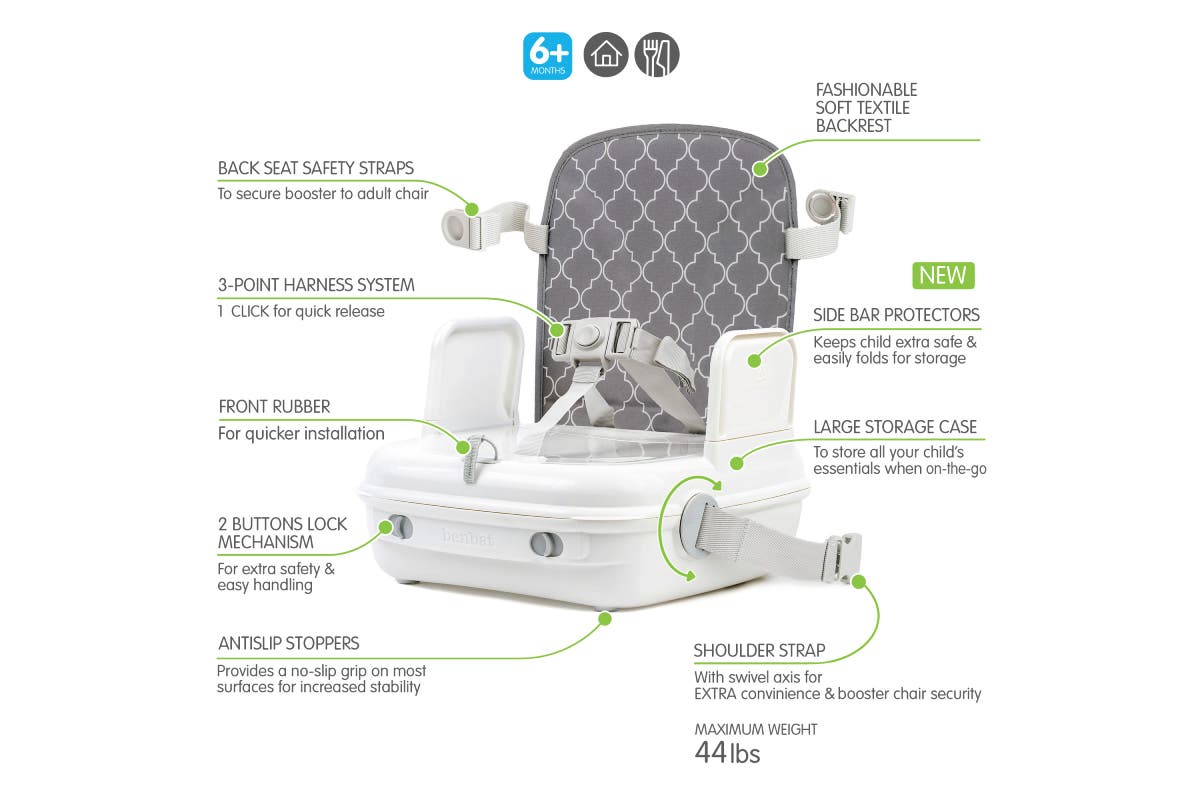 The Benbat Yummi Go Booster Seat doubles up as a storage space for your child’s daily essentials and acts as a trendy travel bag when the seat is closed. You’ll love the simple set-up, cleanup and portability and your child will love sitting at the table like one of the grownups!