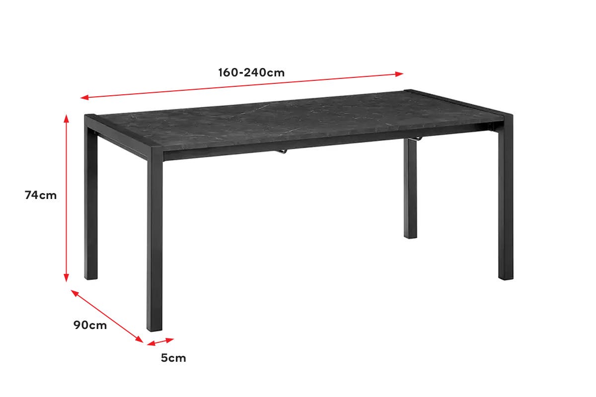- Dimensions: extended – 240 × 90 × 74cm, not-extended – 160 × 90 × 74cm