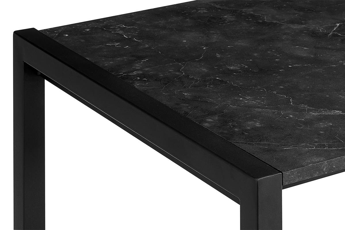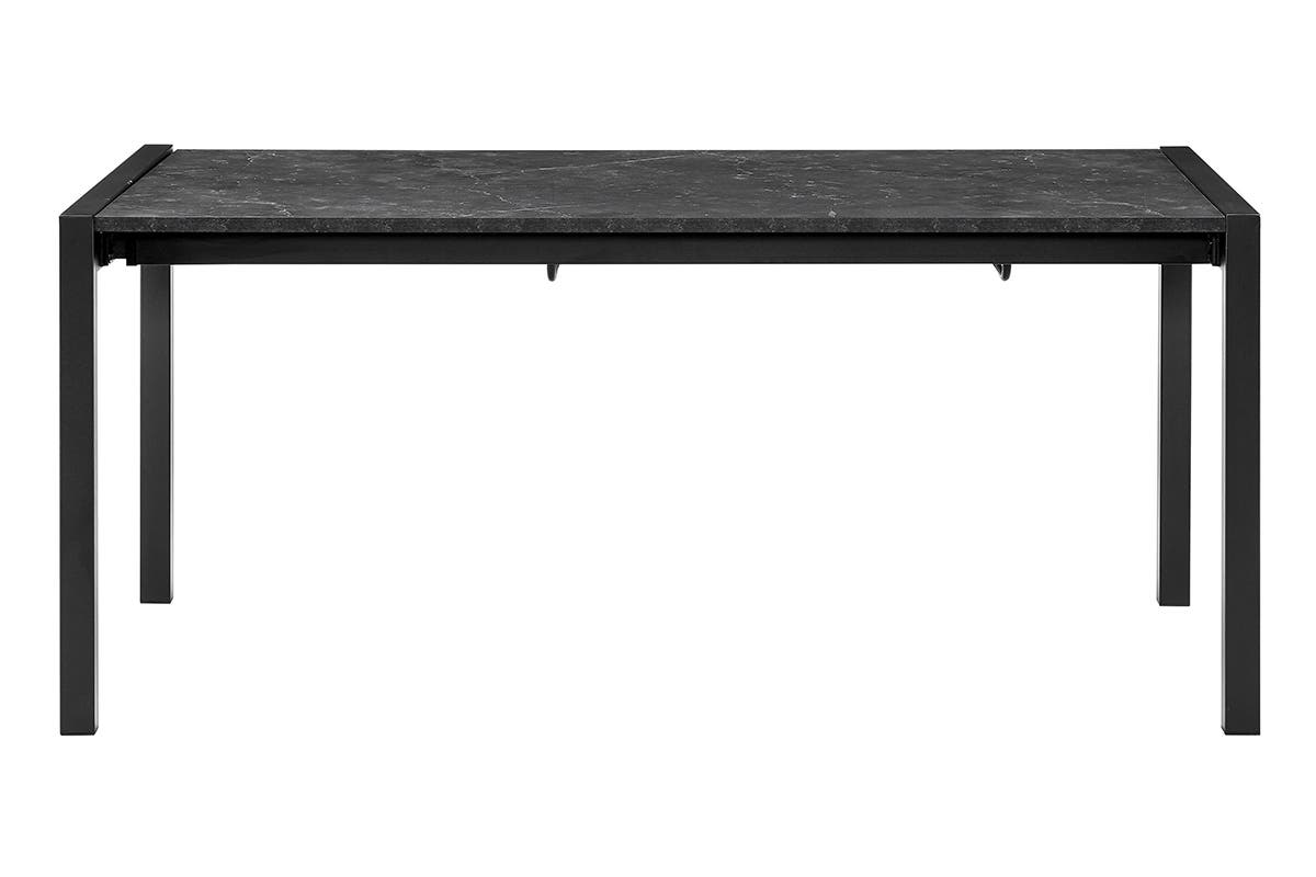 Featuring a clean-lined minimalist silhouette, a marble look table top and sleek metal frame, this dining table will become a stunning centerpiece of your home.