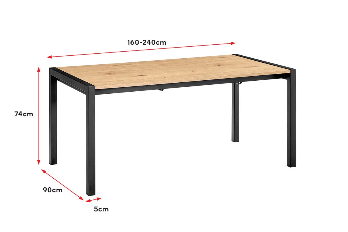 - Dimensions: extended – 240 × 90 × 74cm, not-extended – 160 × 90 × 74cm